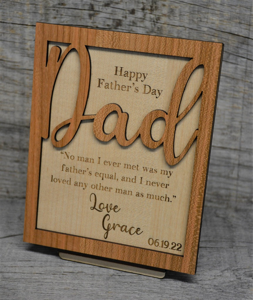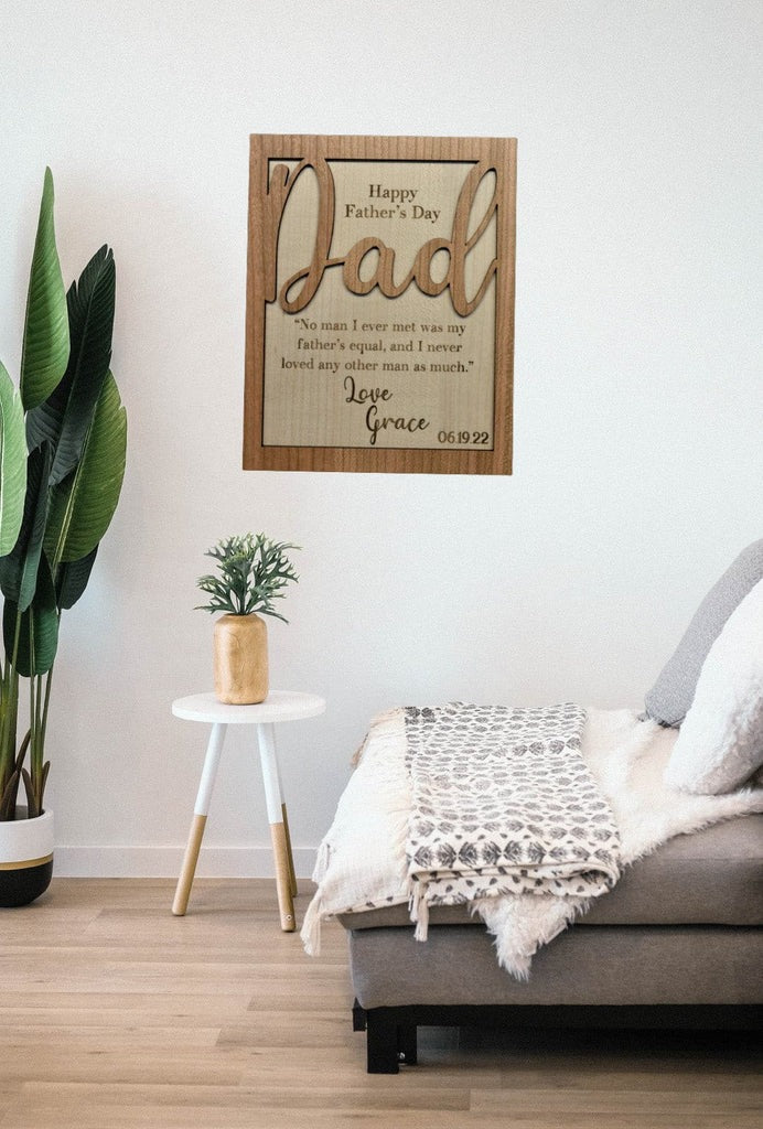 Personalized Dad 2 Layered Wooden Sign, Happy Father Day Sign, Custom Name Frame Sign, Birthday Gift For Father