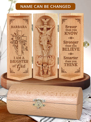 Personalized Daughter Of God Openable Wooden Cylinder Sculpture of Jesus Christ, Christian Gifts