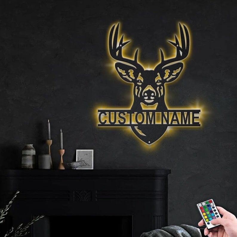Personalized Deer Hunting Monogram Metal Sign WITH LED/WITHOUT LED Lights Custom Deer Hunting Metal Sign Hobbie Gifts Birthday Gift Hungting Gift