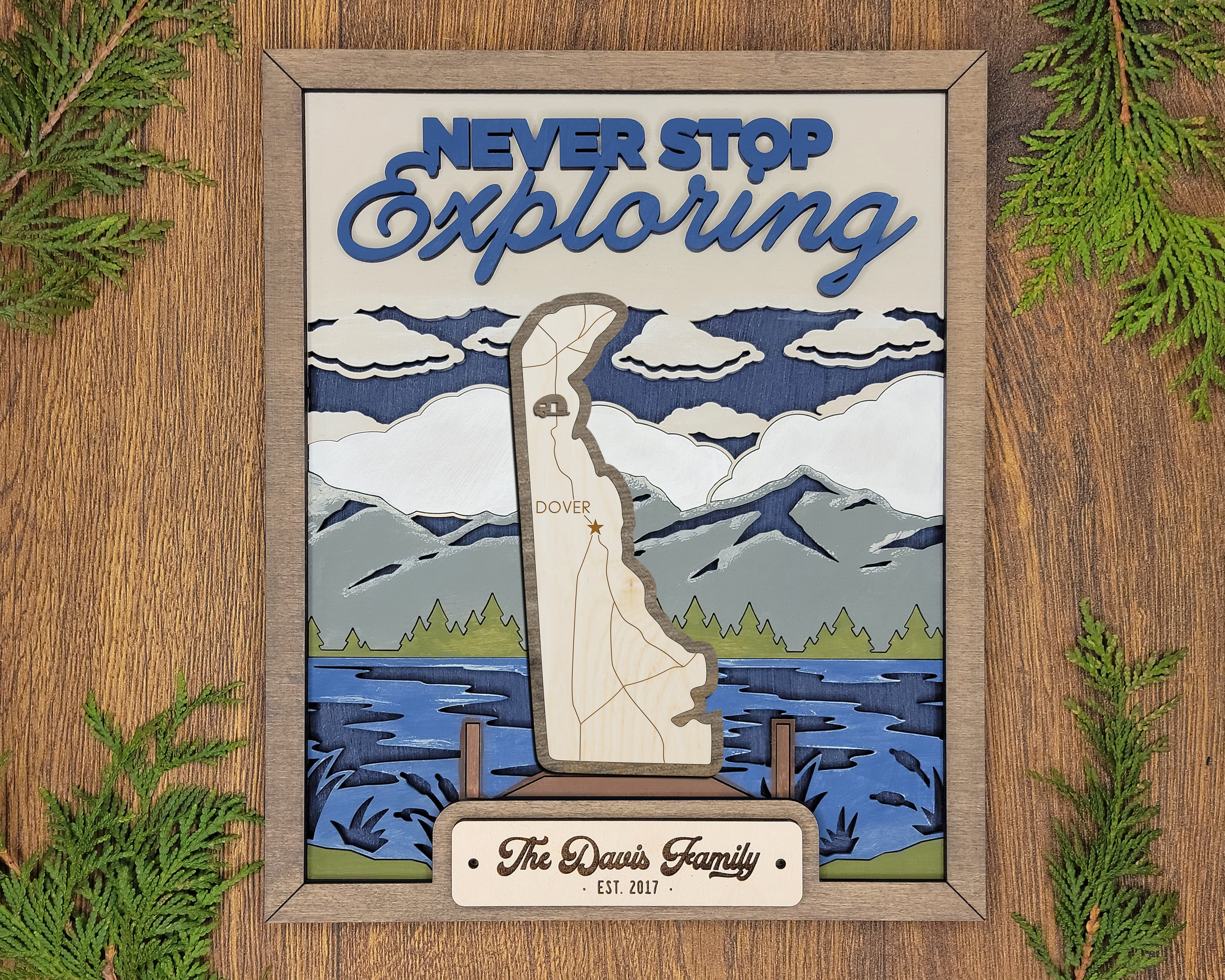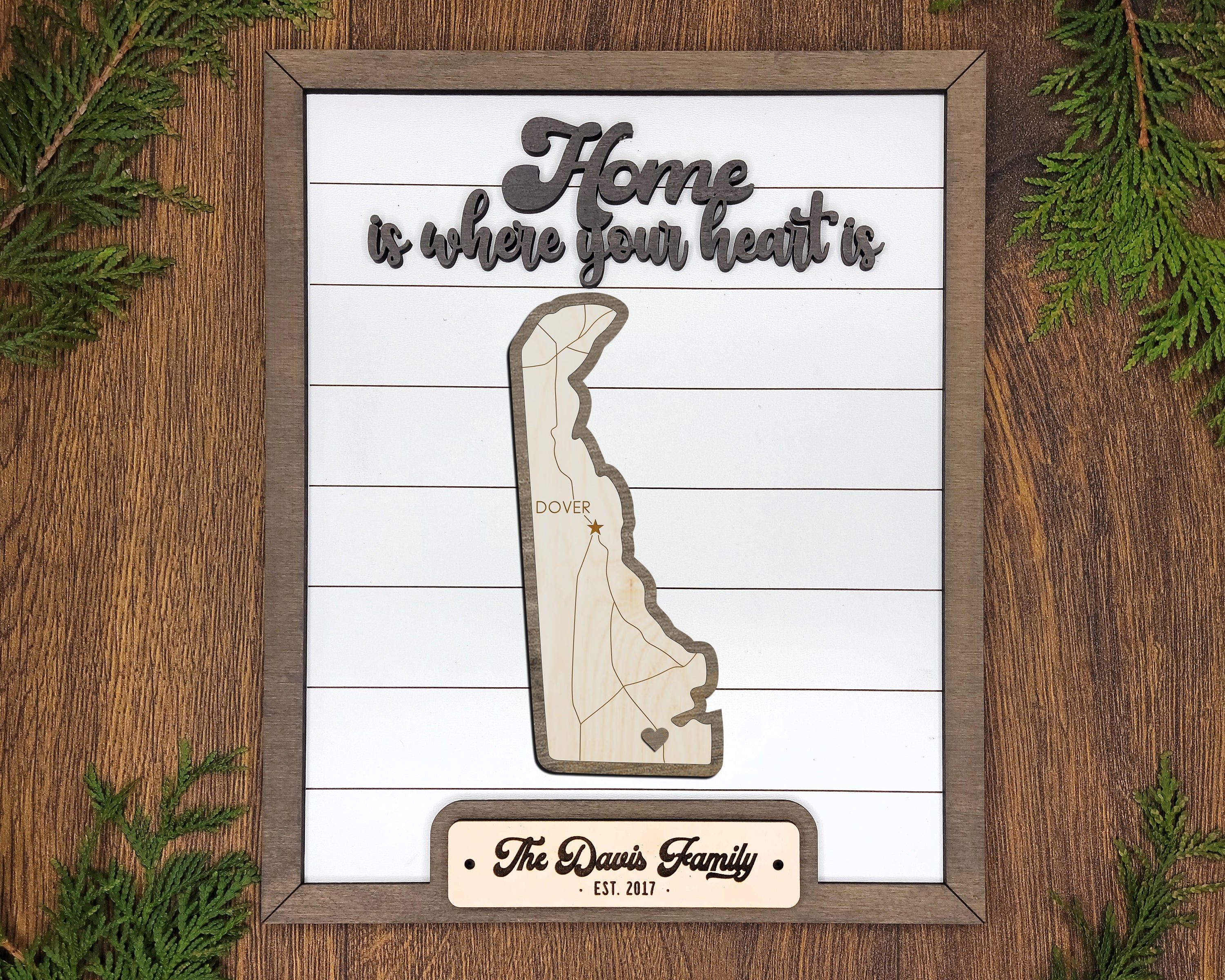Personalized Delaware States Wood Frame, 50 States 2 Layers Wood Plaque, Gift For Nature Lovers