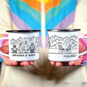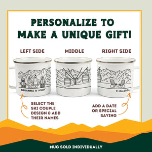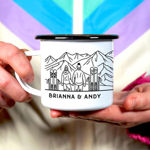 Personalized Enamel Mug, Couples Skiing Mug, Gift For Couples