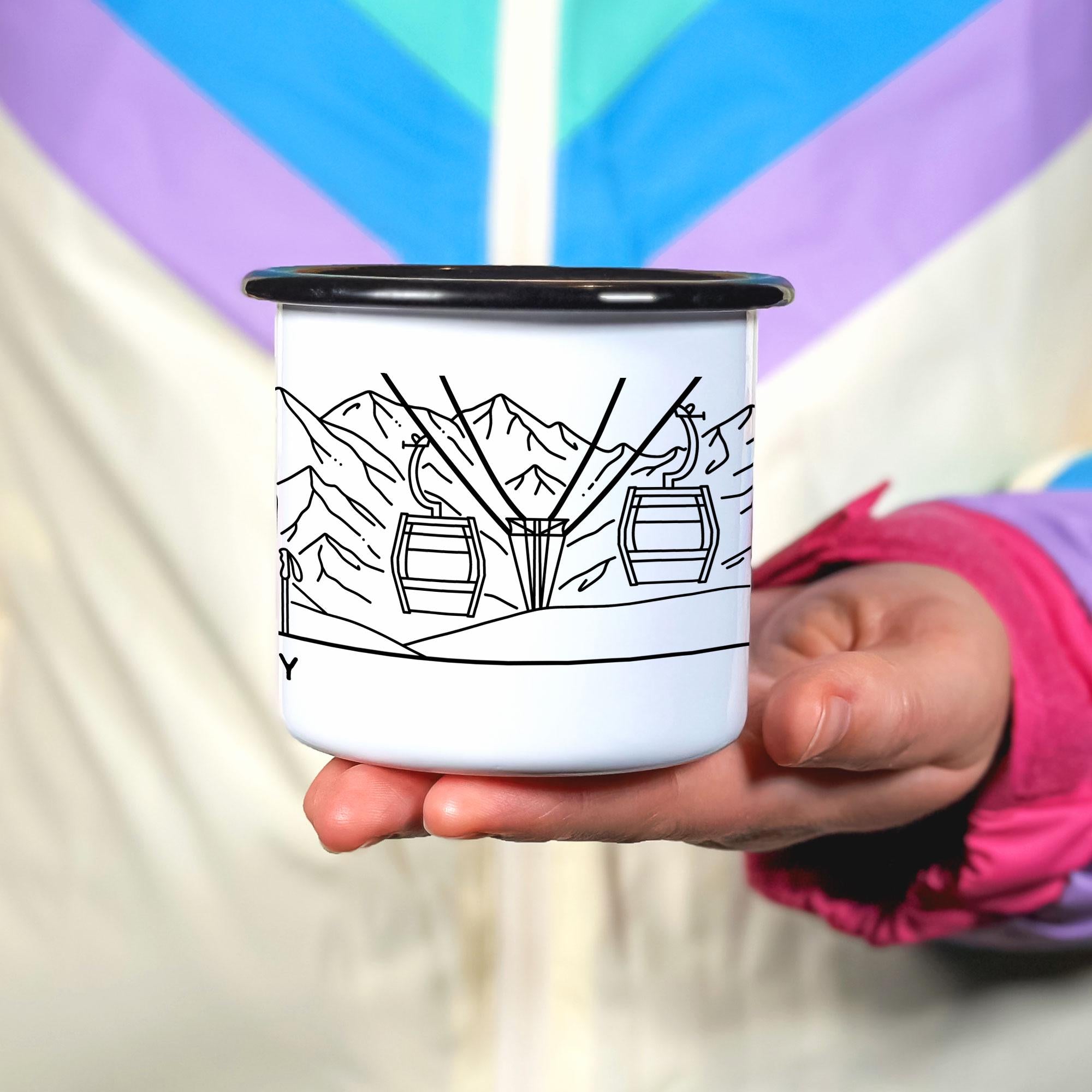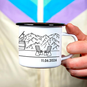 Cozy up next to the fire & unwind after a day on the slopes with our personalized ski couple enamel camp mug. This charming mug makes the perfect Christmas gift, après-ski souvenir, or a cute addition to your chalet or ski cabin decor. Whether for an engagement party, bridal shower, elopement, wedding, or anniversary, it’s a unique gift for the adventurous couple to celebrate their love for one another and their shared passion for hitting the slopes.