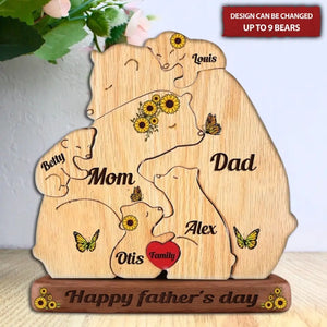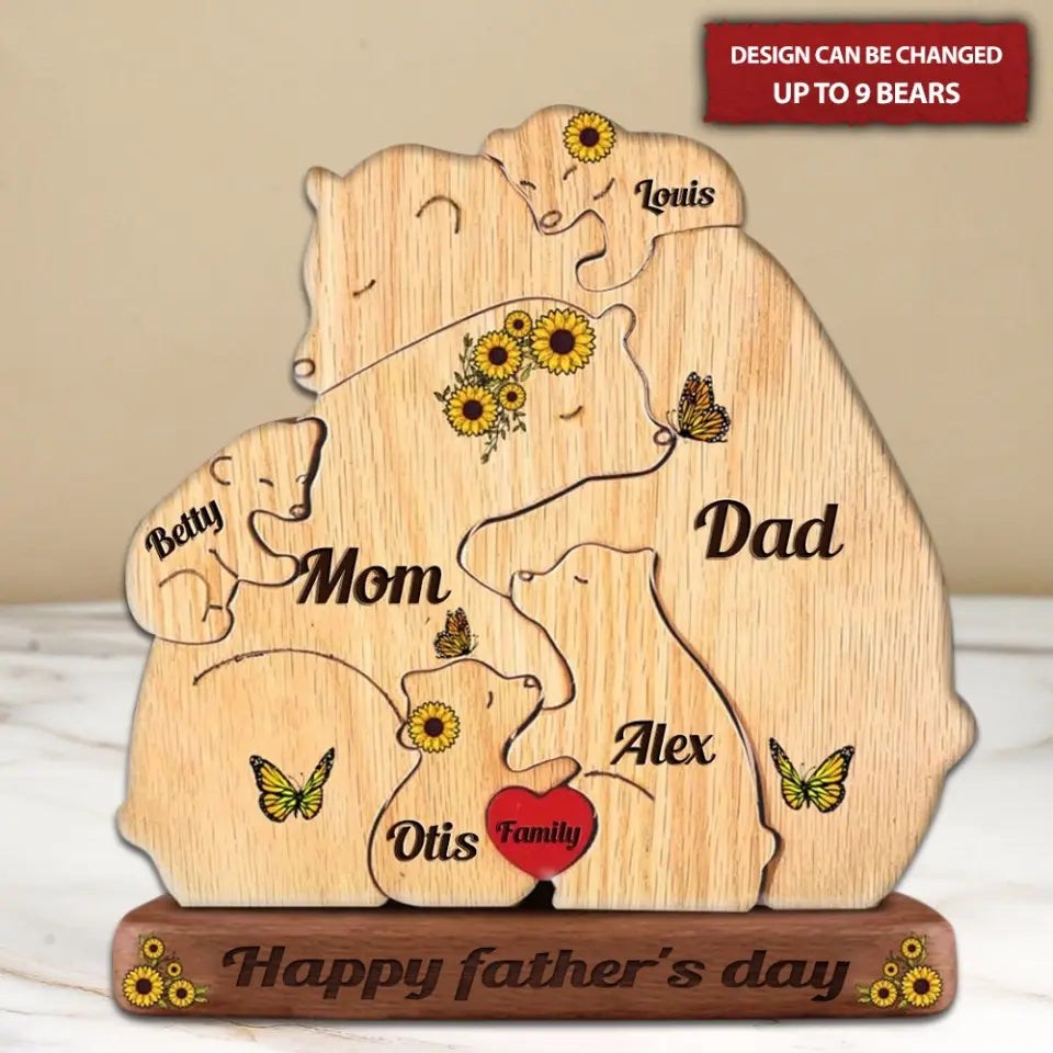 Personalized Engraved Wooden Bears Family Sunflower Puzzle, Father's Day Gift, Gifts For Dad