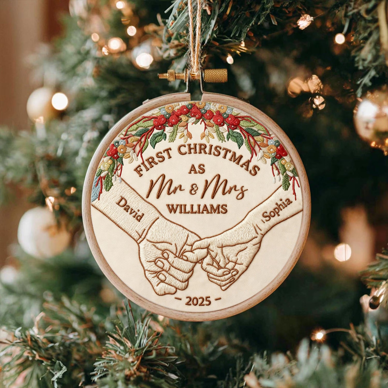 Personalized First Christmas As Mr Mrs Embroidery Hoop Ornament, Couple Ornament, Newly Wed Gift