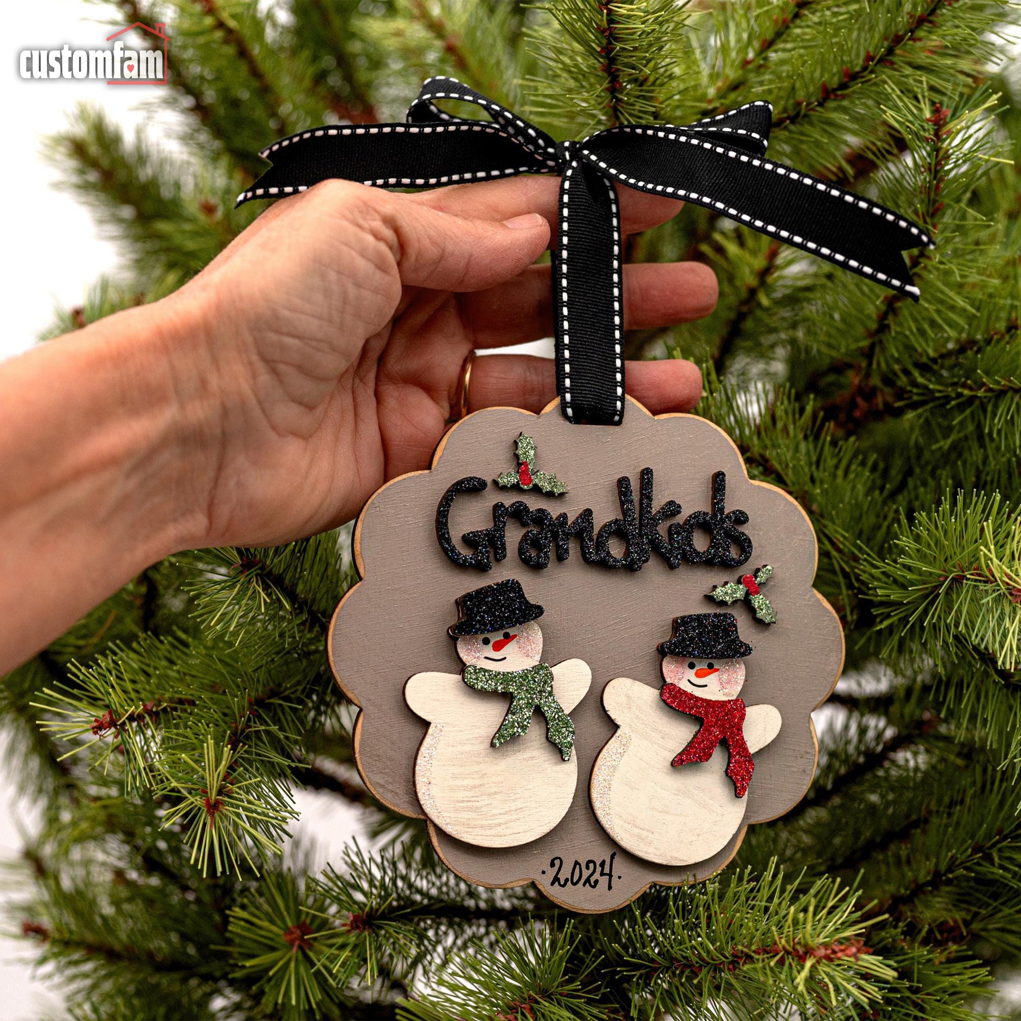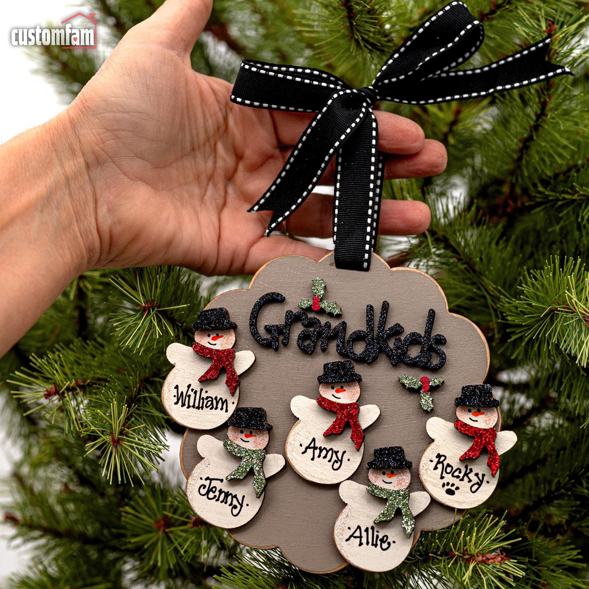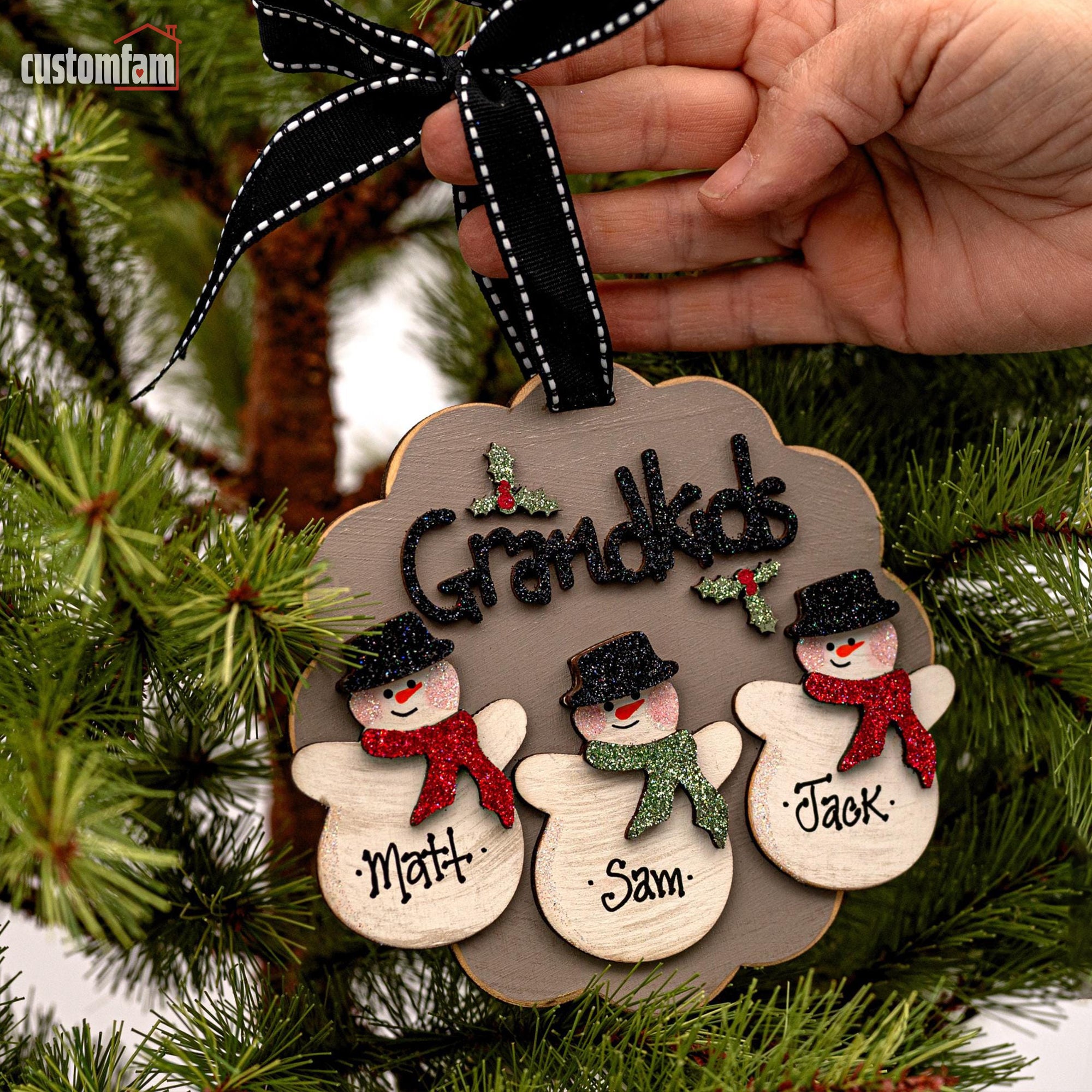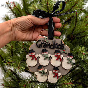 Personalized Grandkids Snowman Christmas Ornaments, Family Gifts