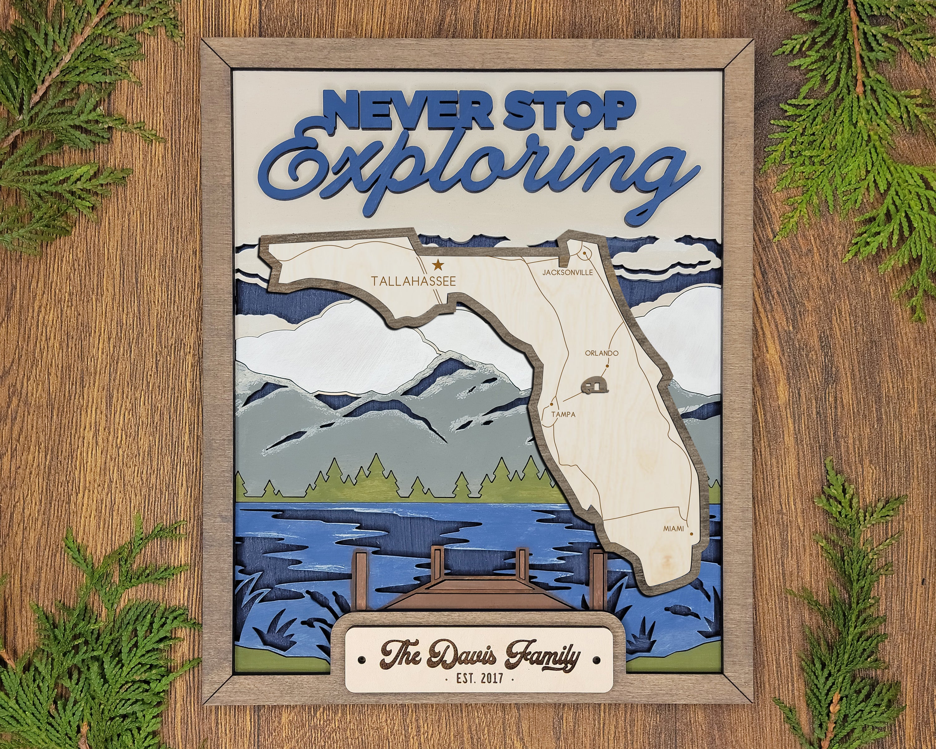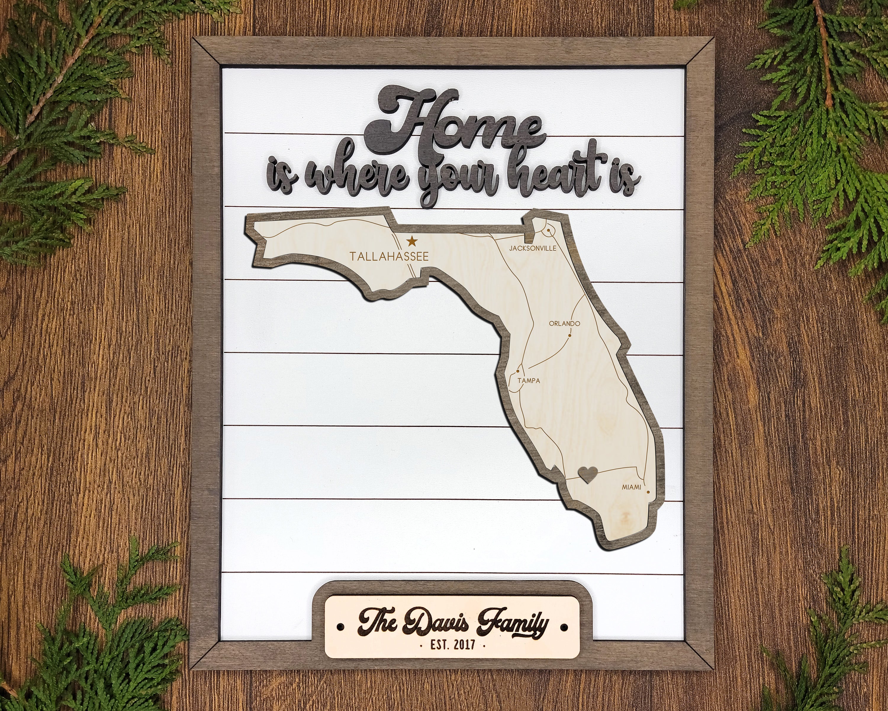 Personalized Florida States Wood Frame, 50 States 2 Layers Wood Plaque, Gift For Nature Lovers