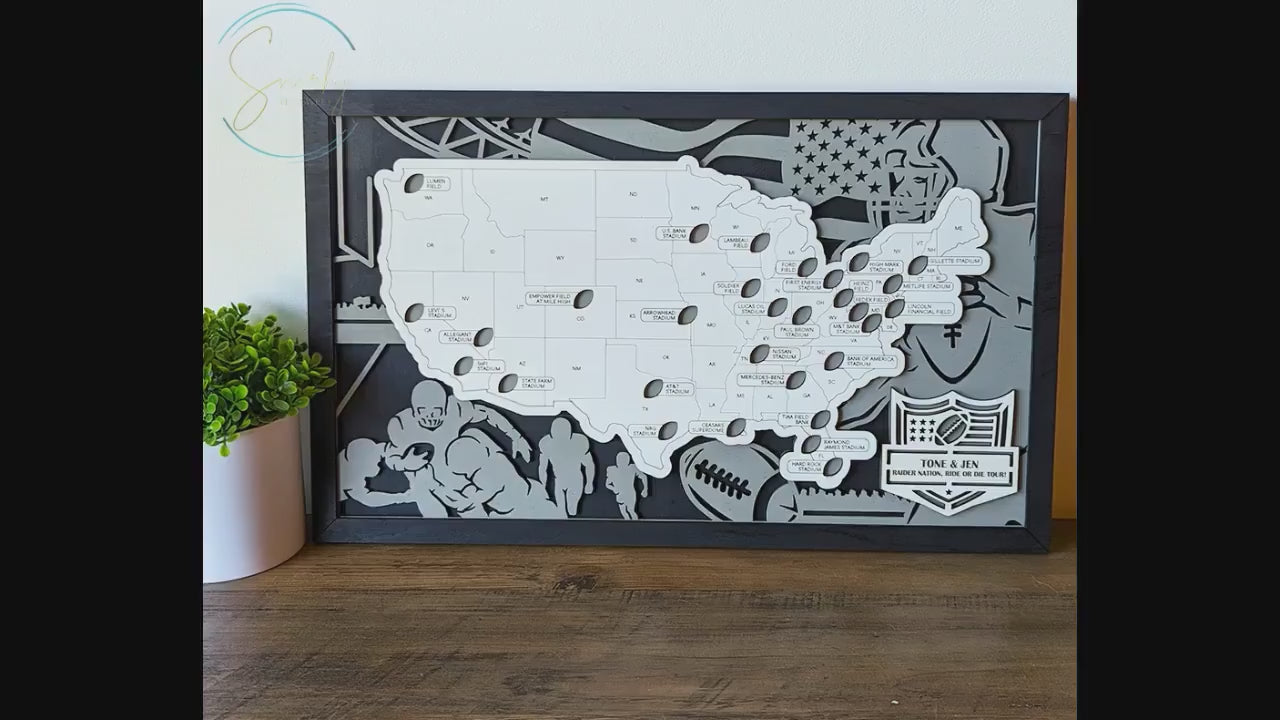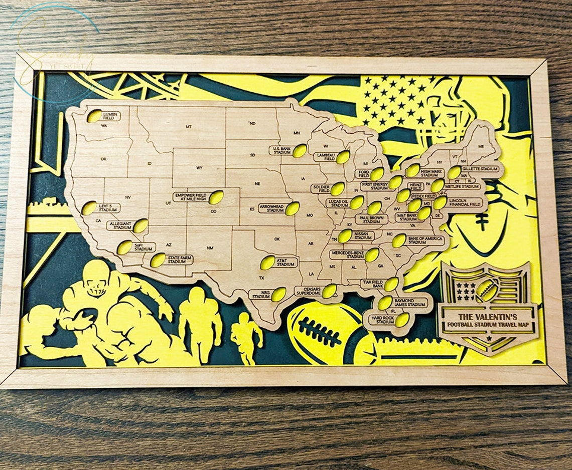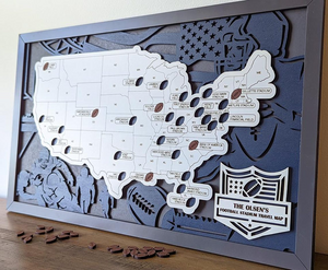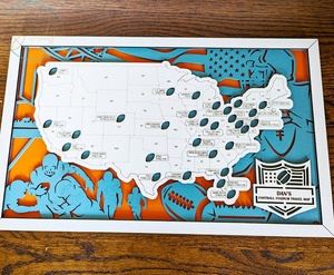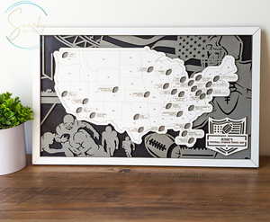Celebrate your passion for football with our Personalized Football Stadium Map, a unique and interactive way to track the stadiums you've visited across the United States. This custom map highlights all the major football stadiums, from NFL arenas to college football hotspots, allowing you to mark your travels and experiences. Perfect for football fans, stadium enthusiasts, and collectors, this map serves as a personalized keepsake that captures the spirit of your football journey.