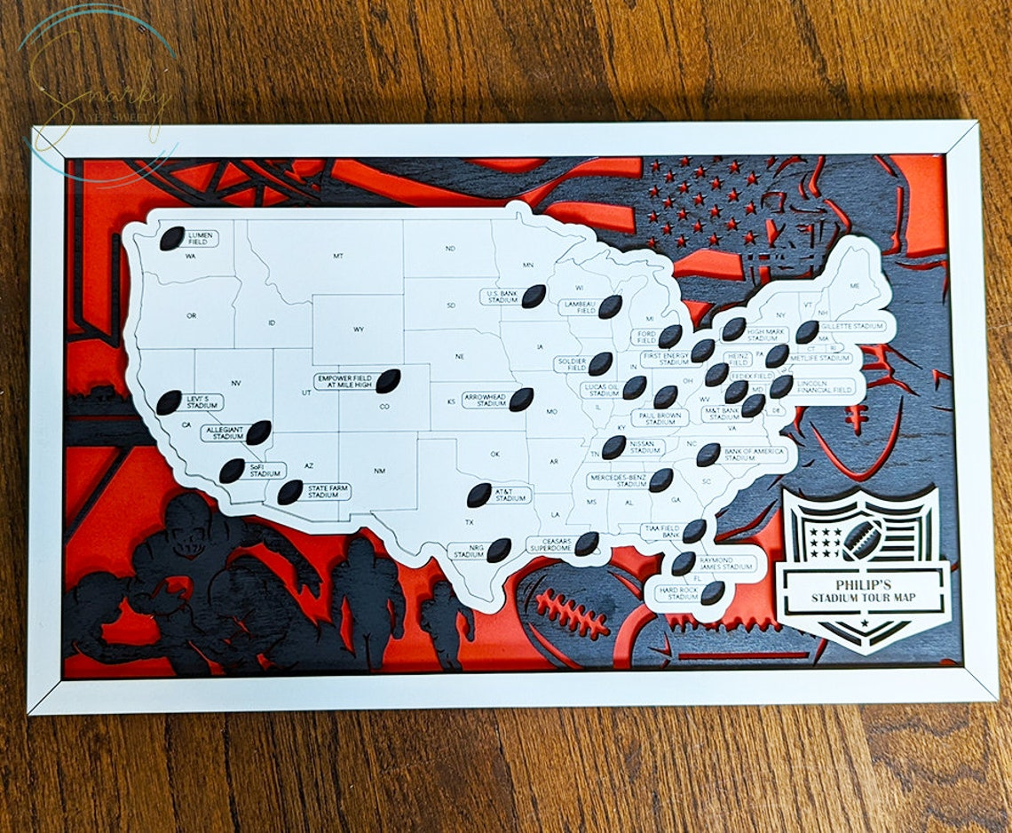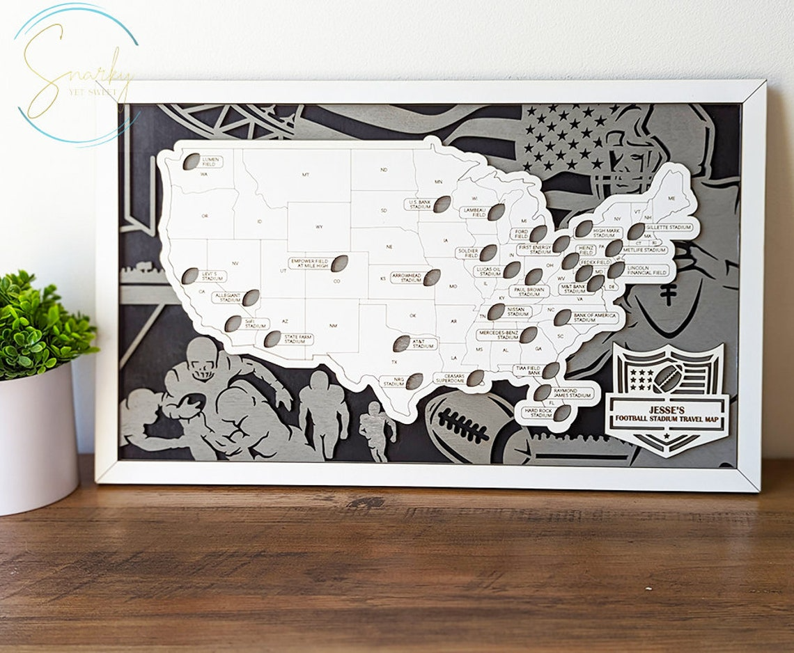 Personalized Football Stadium Map, Football Map USA, Gift For Football Lover, Football Stadium Tracker