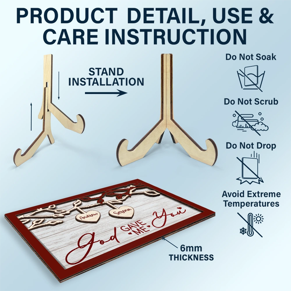 Personalized God Gave Me You 2-Layered Wooden Plaque, Couple Valentine Gifts, Wedding Anniversary Gifts