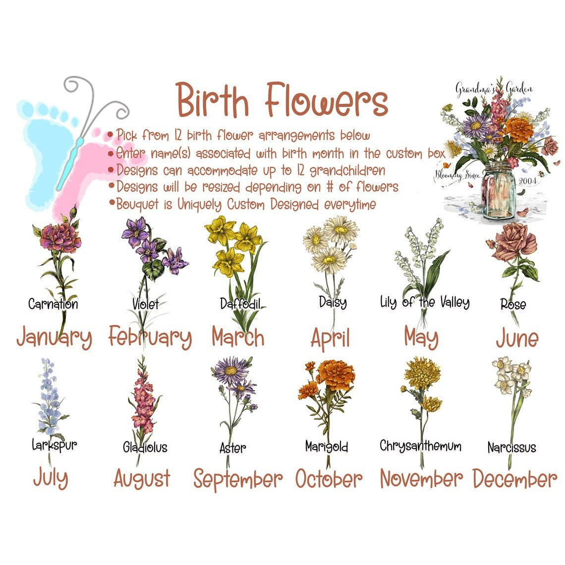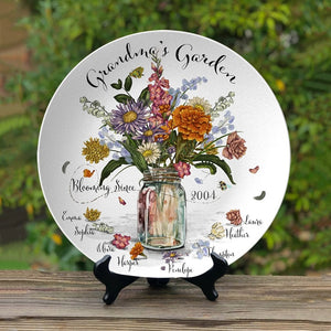 Personalized Grandma's Garden Birth Flower Platter With Grandchildren Name For Mother's Day Gift, Father's Day Gift, Gift for Mom, Grandma