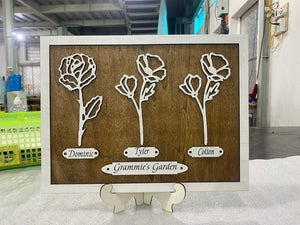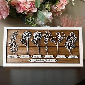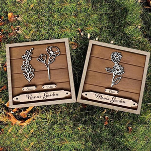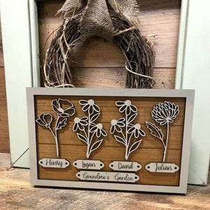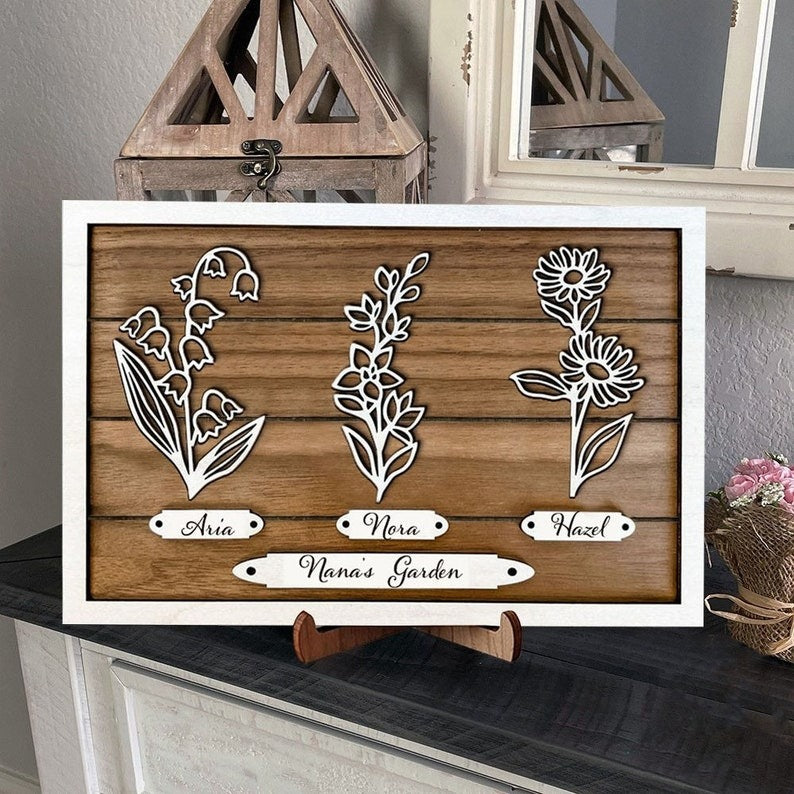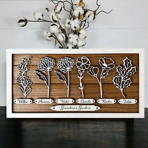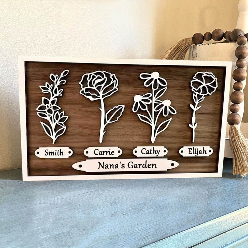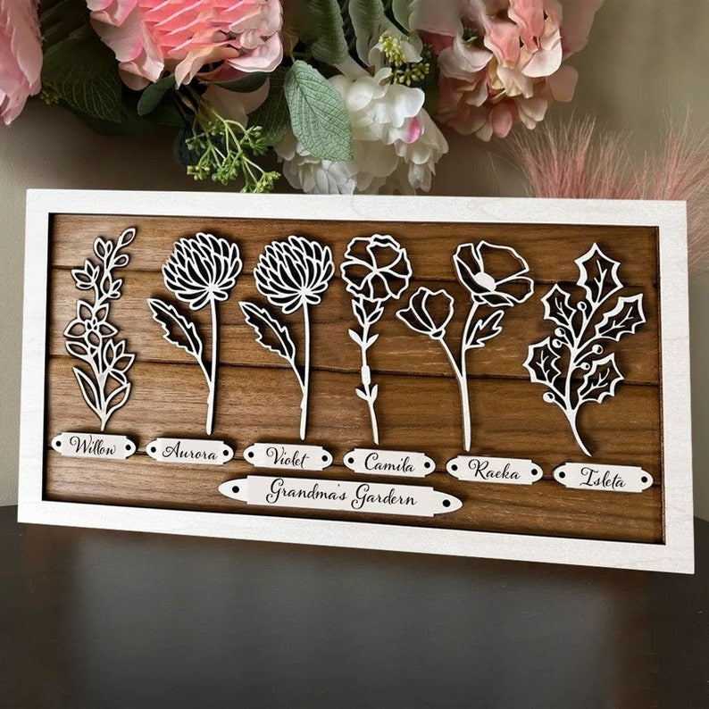 Personalized Grandma's Garden Birth Month Flower Frame Wood Sign, Gifts For Mother's Day, Present For Grandma With Grandchildren Names