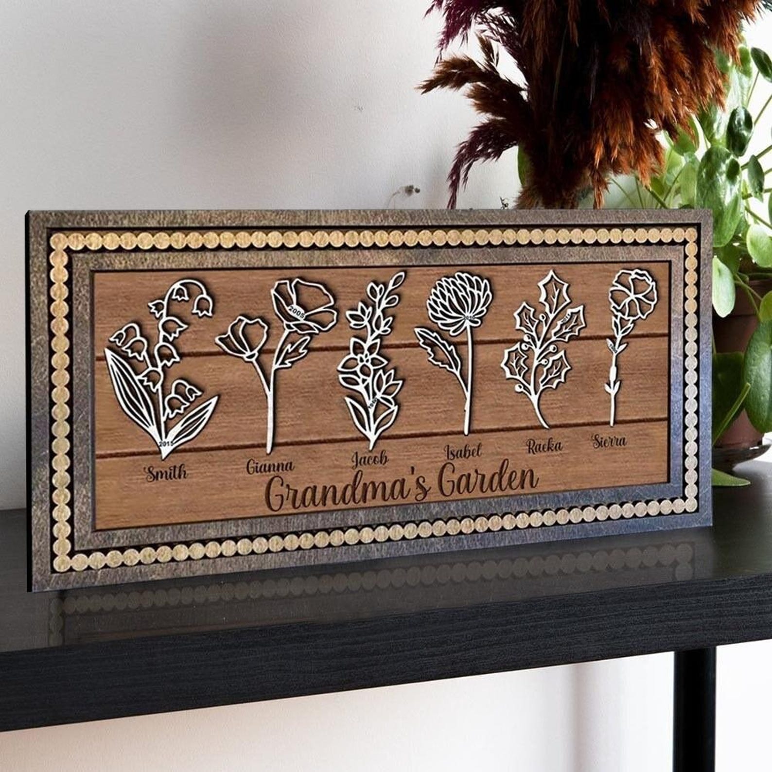 Personalized Grandma's Garden Birth Month Flower Wood Frame, Gift For Mom