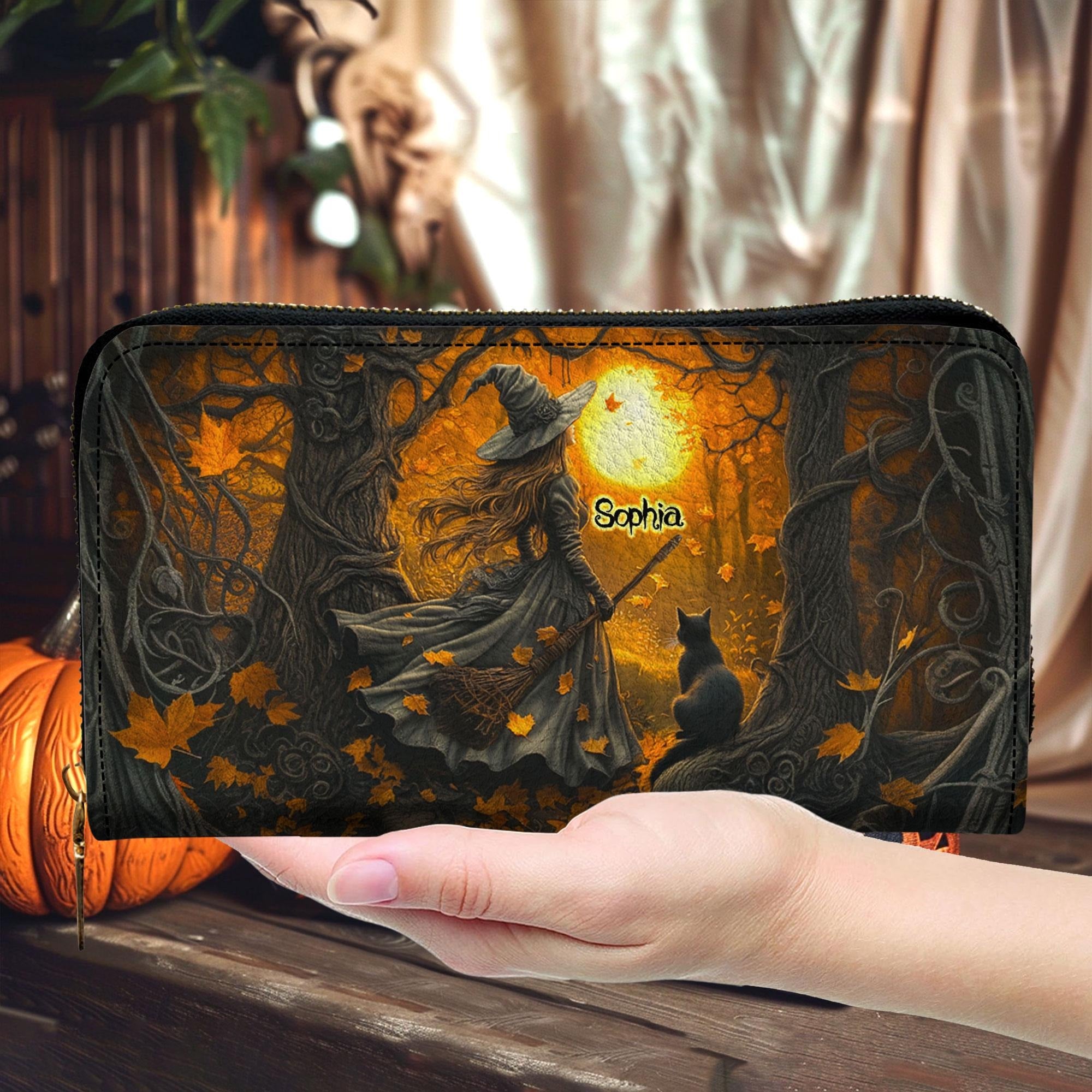 Personalized Halloween Bag With Wallet - Witchy Gothic - Spooky Season - Leather Shoulder Bag - Basket for Halloween