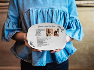 Cherish family traditions with our Personalized Handwritten Recipe Platter, a heartfelt Recipe Plate Keepsake that transforms a cherished recipe into a beautiful, lasting memory. Whether it’s your grandma’s famous cookie recipe or a secret family dish passed down through generations, this platter allows you to preserve those special instructions in the original handwriting, making it a unique and sentimental Gift For Mom or any family member.