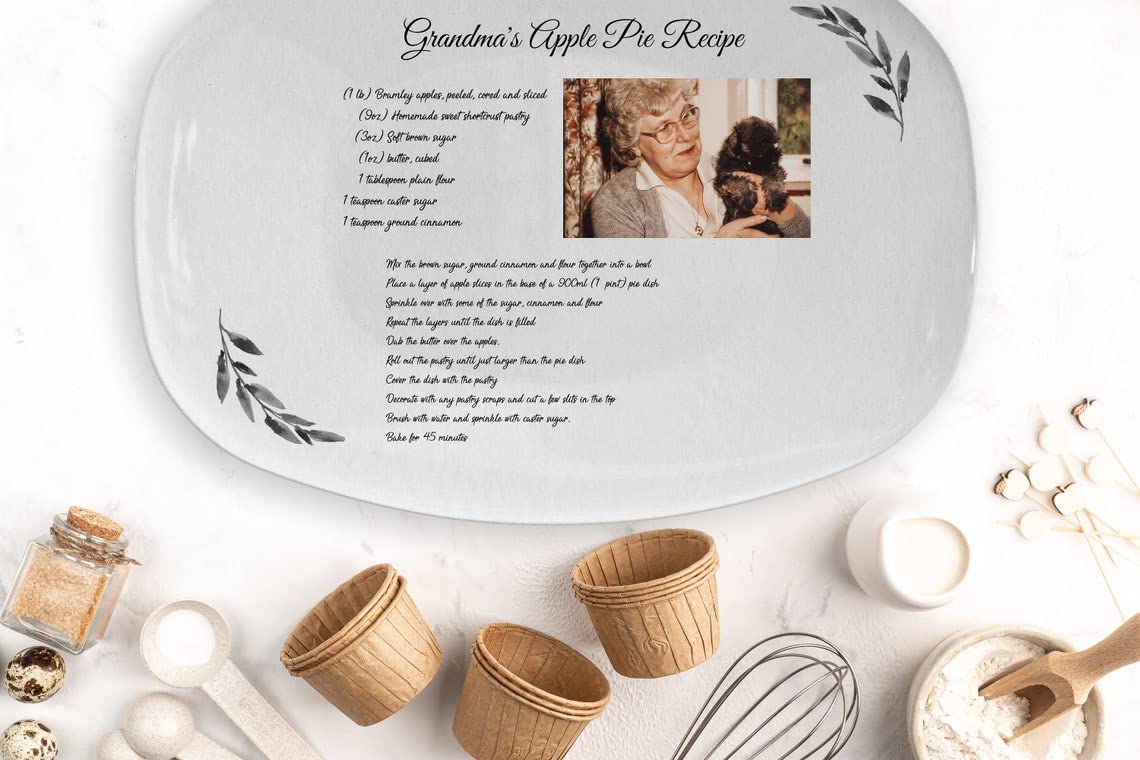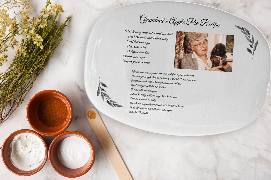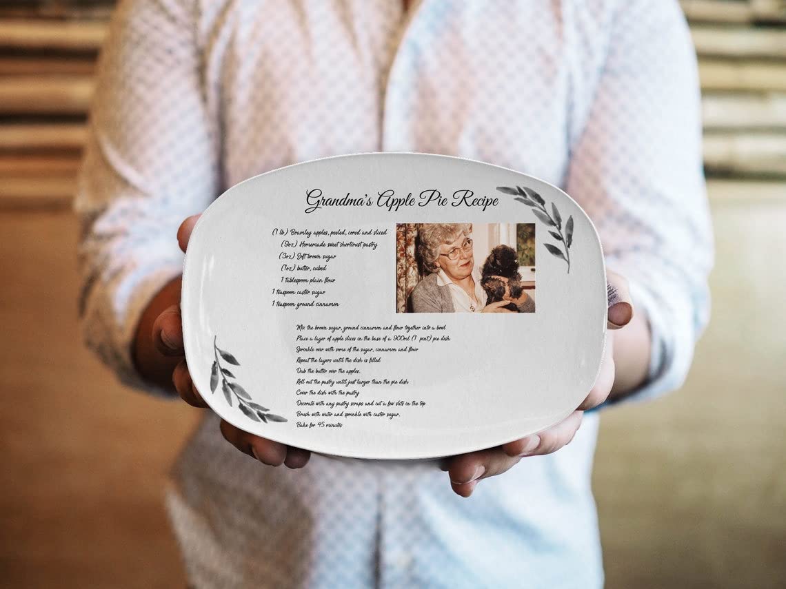 Its durable resin construction ensures it can be enjoyed year after year as part of your treasured holiday decorations. The platter can feature any handwritten recipe, capturing the warmth and nostalgia of homemade meals and the love that went into them. It’s a wonderful way to honor loved ones and keep their culinary traditions alive during family gatherings and holiday dinners.