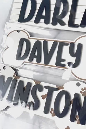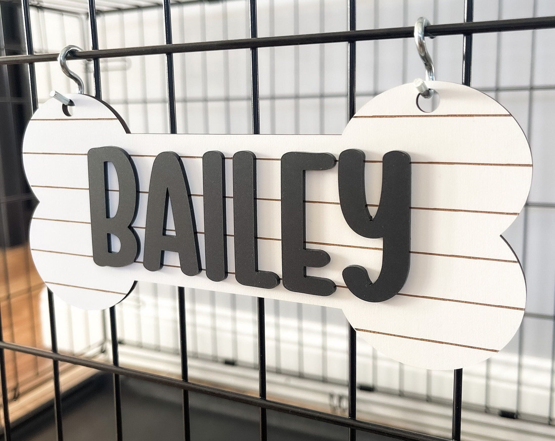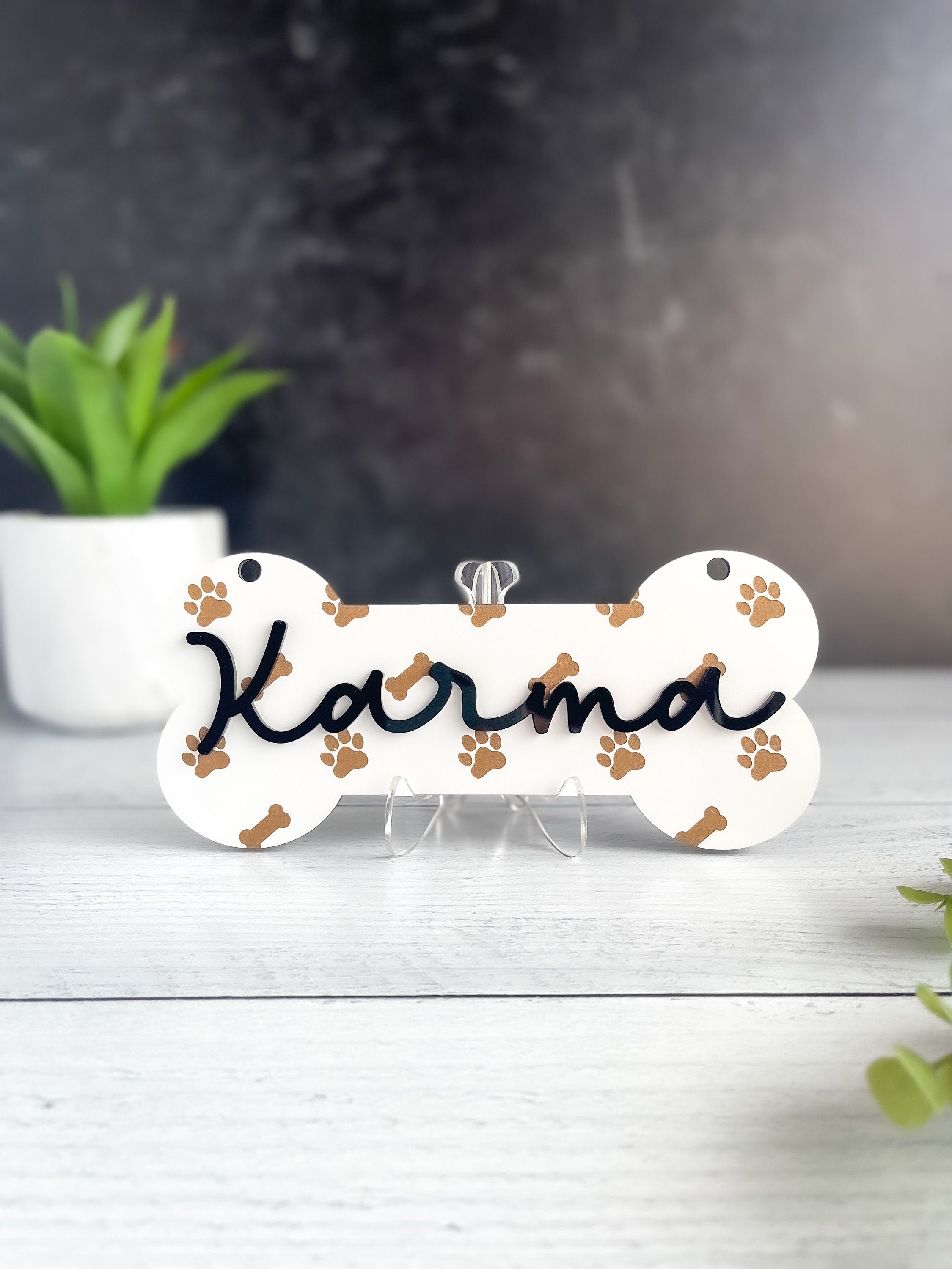 This beautiful bone sign displaying your dogs name would be perfect displayed on their crate to dress it up. Makes the perfect gift for yourself or that dog lover in your life.