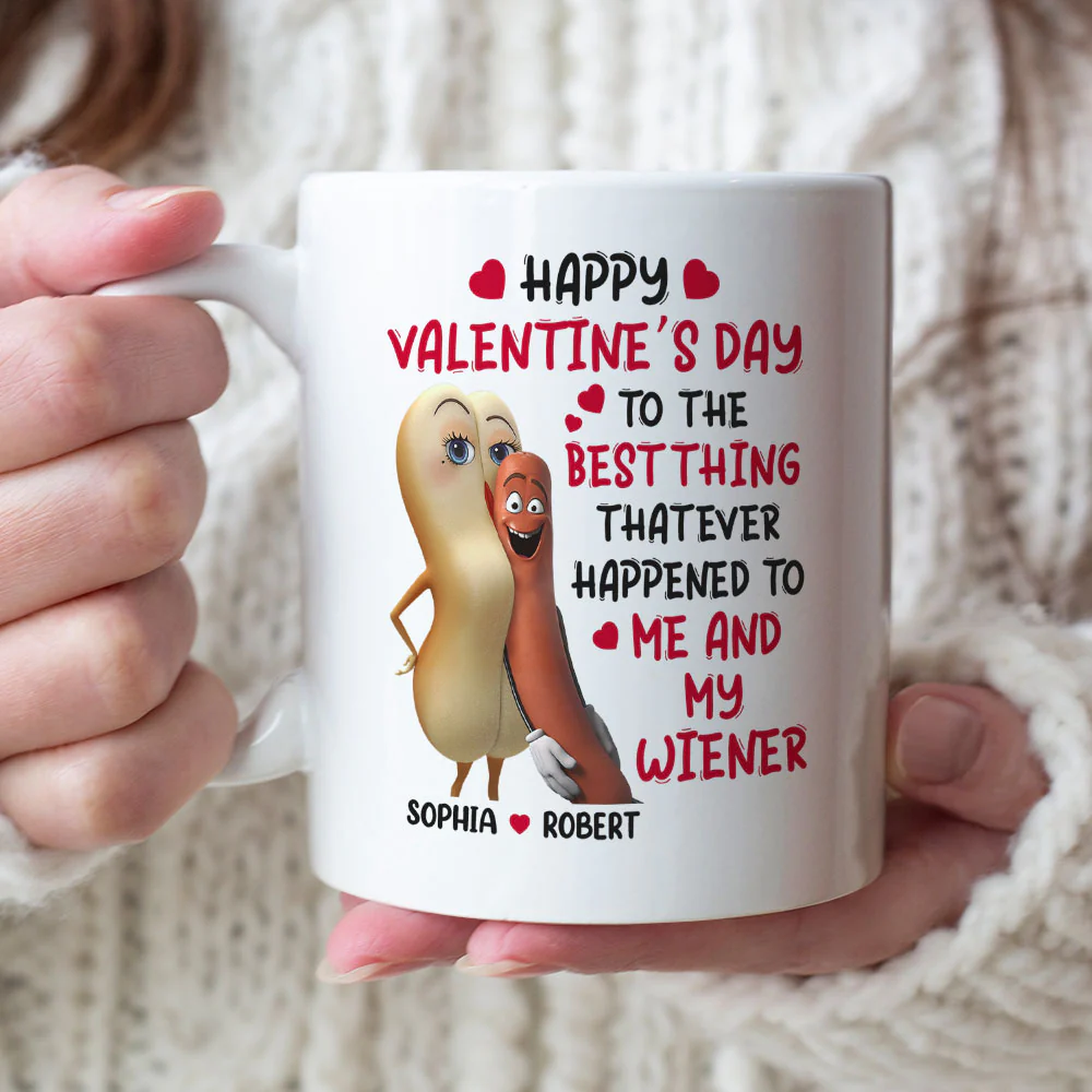 Celebrate love and humor this Valentine’s Day with the Personalized "Happy Valentine’s Day Me and Wiener" Mug. This fun and quirky coffee mug is the perfect gift for couples who love to share a laugh together. Featuring the playful message "Happy Valentine’s Day Me and Wiener," this mug adds a lighthearted twist to your Valentine's Day celebrations. Customize it with your names or a special date to make it uniquely yours. Made from high-quality ceramic, this mug is perfect for enjoying your favorite beverages together while sharing a special moment.