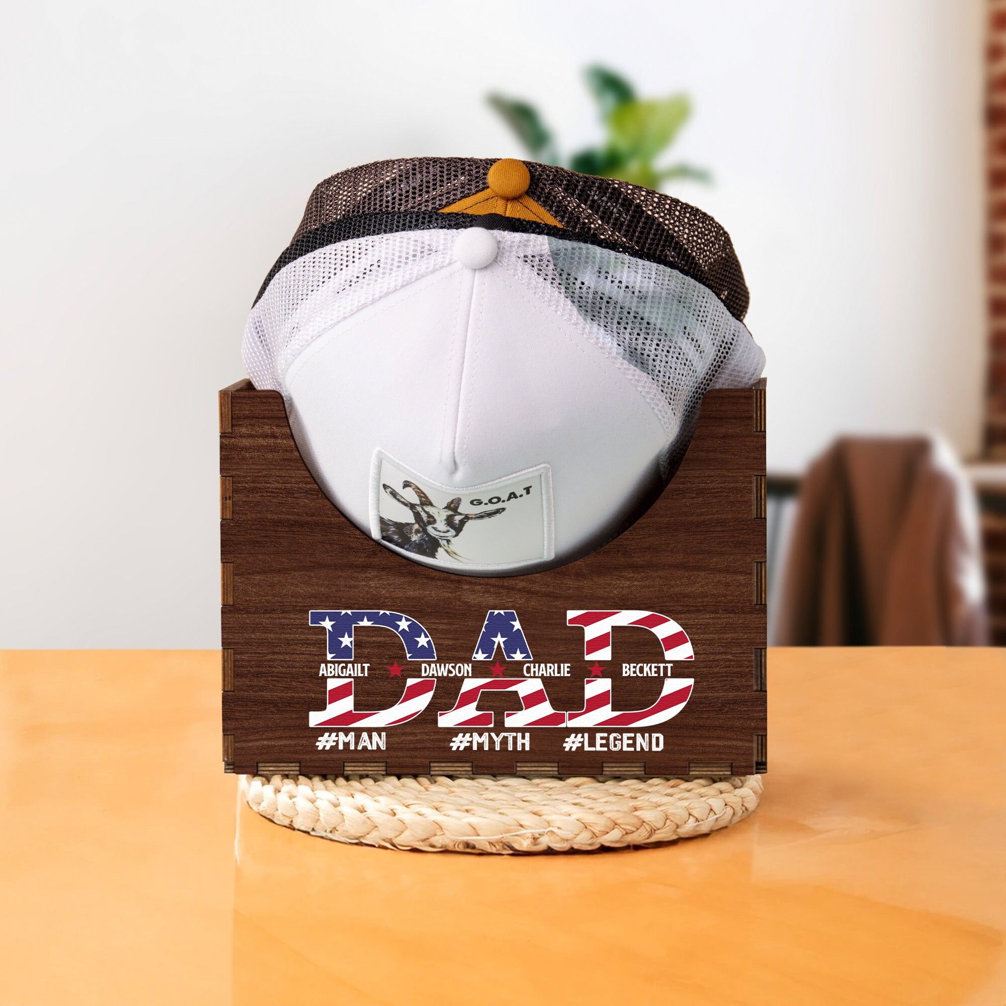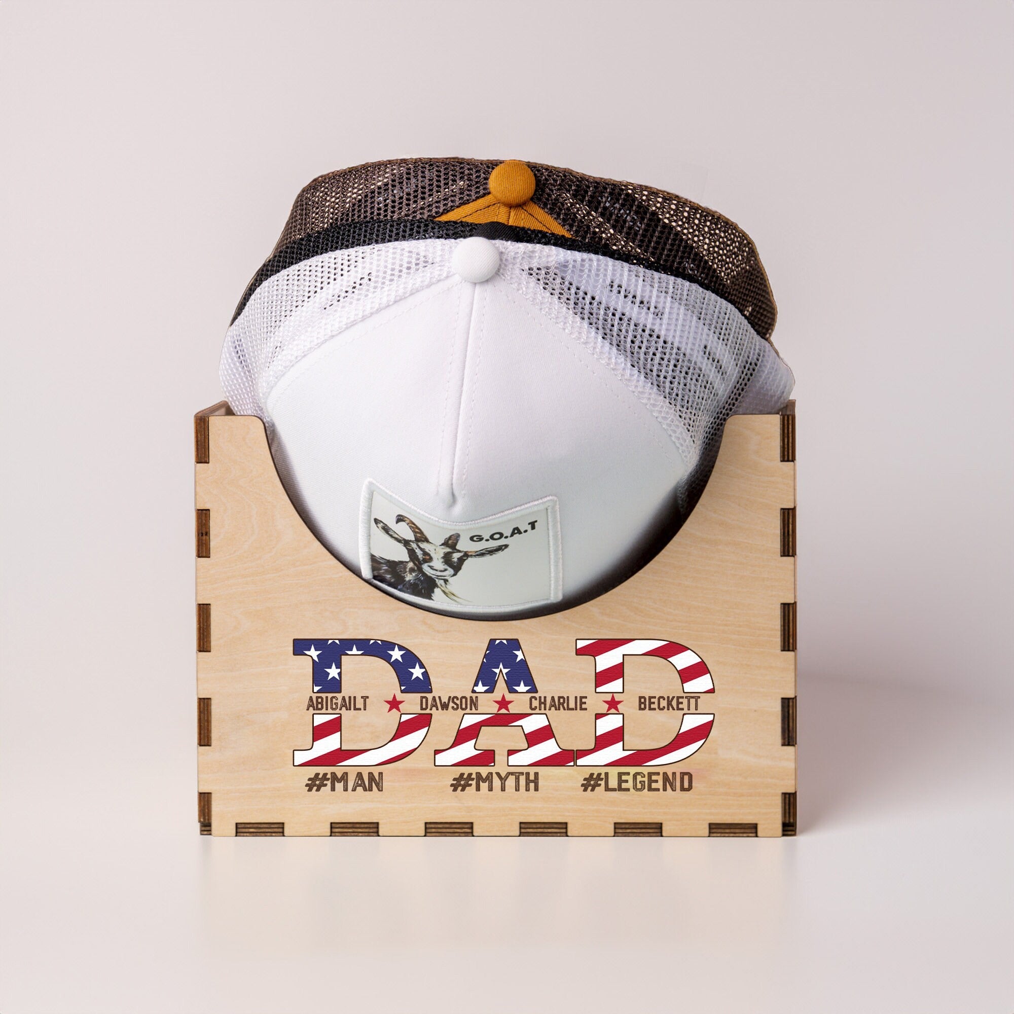 Personalized Hat Holder With Kid Names, Wooden Cap Stand, Baseball Cap Organizer, Gifts For Dad