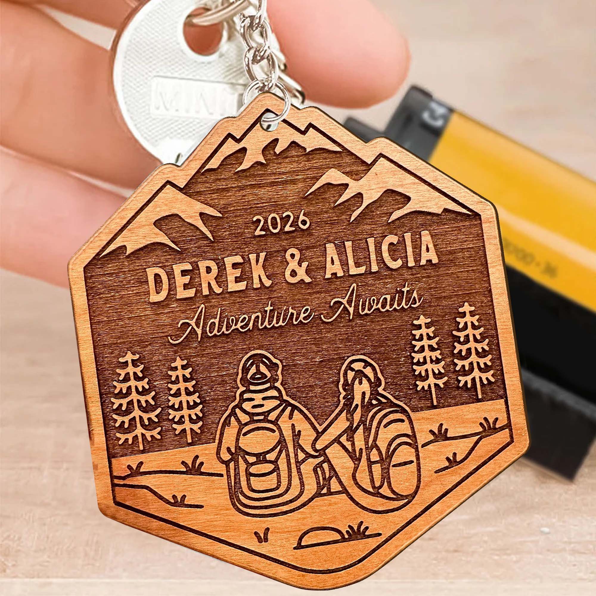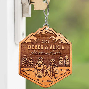 Personalized Hiking Couple Keychain, Camping Keychain, Couple Valentine Gift