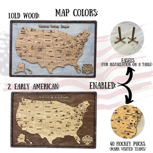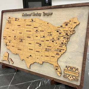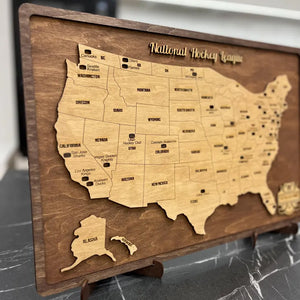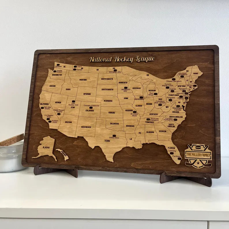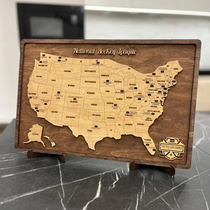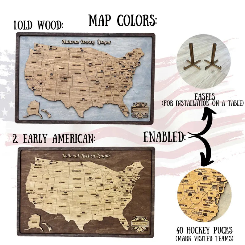 Personalized Hockey Custom Wood Map Tracker, Unique Gift For Dad