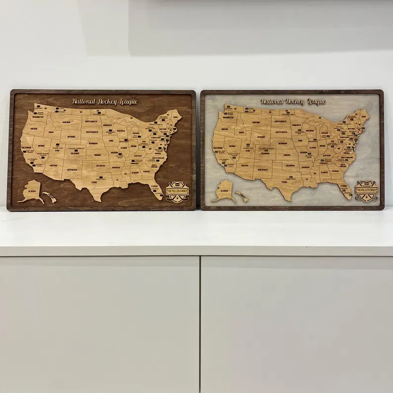 The Hockey Arenas Wood Map Tracker is an exceptional gift for any hockey enthusiast. Crafted from high-quality wood, this beautifully designed map features detailed engravings of iconic hockey arenas across North America, making it not only a decorative piece but also a functional tracker for avid fans.