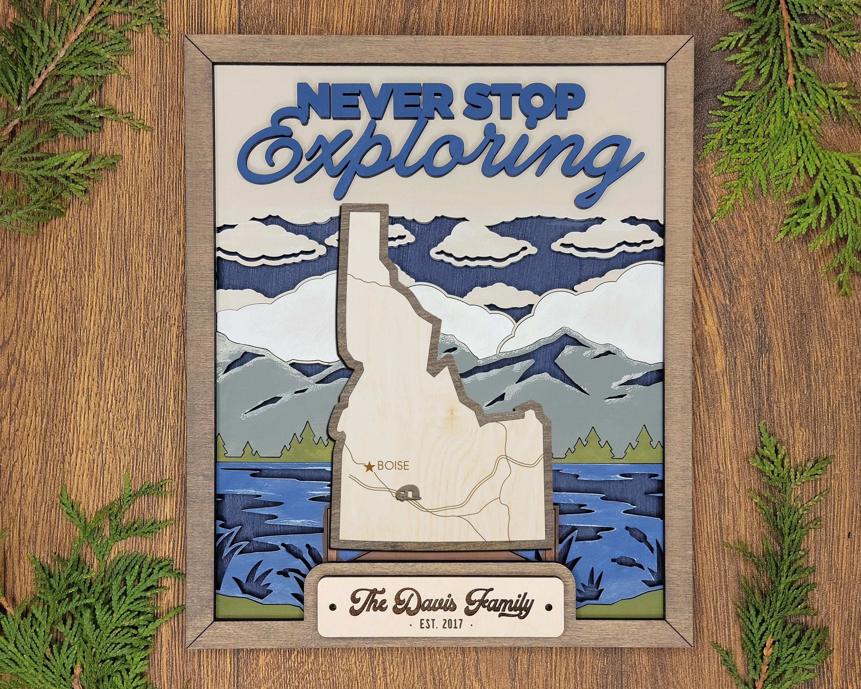 Personalized Idaho States Wood Frame, 50 States 2 Layers Wood Plaque, Gift For Nature Lovers