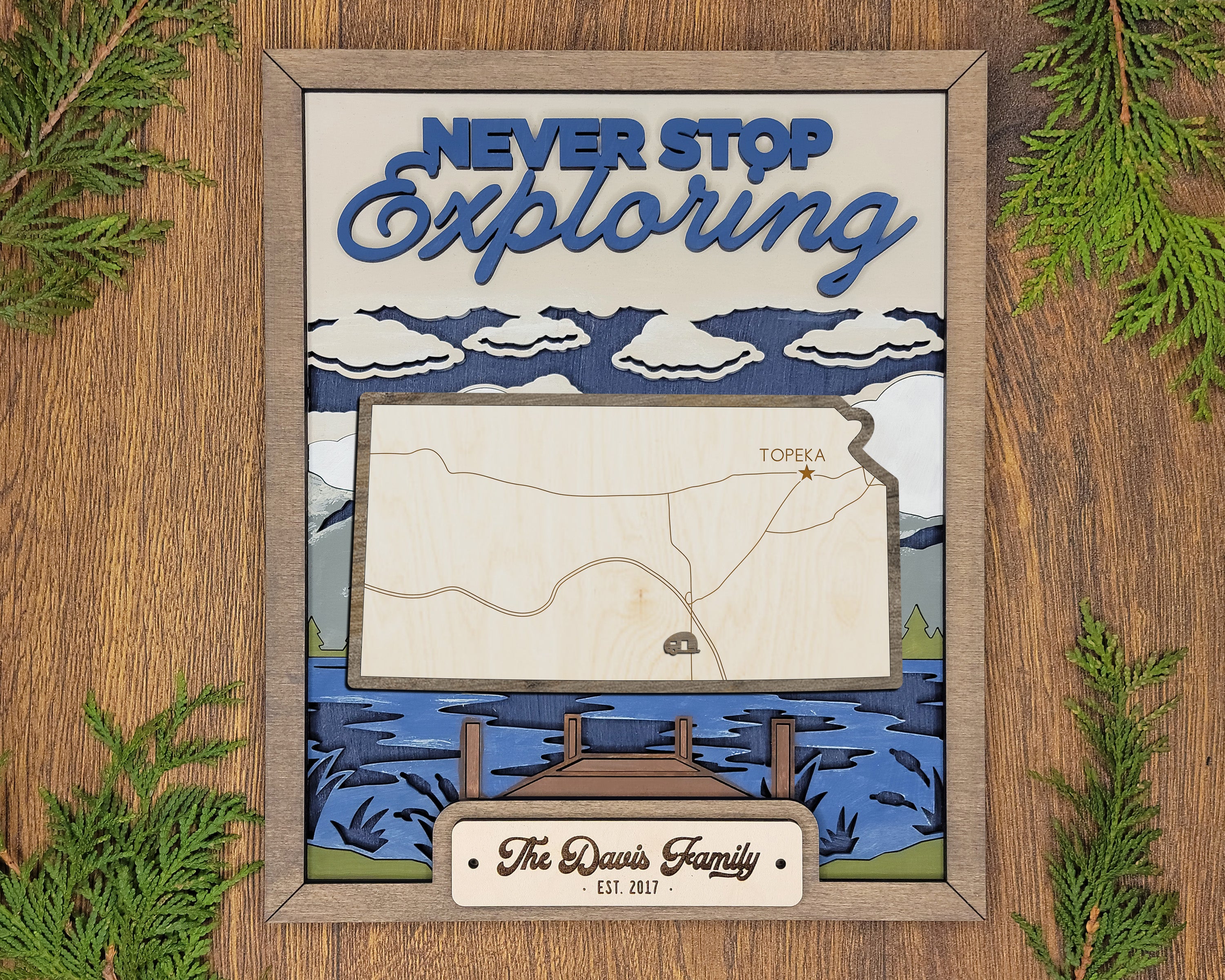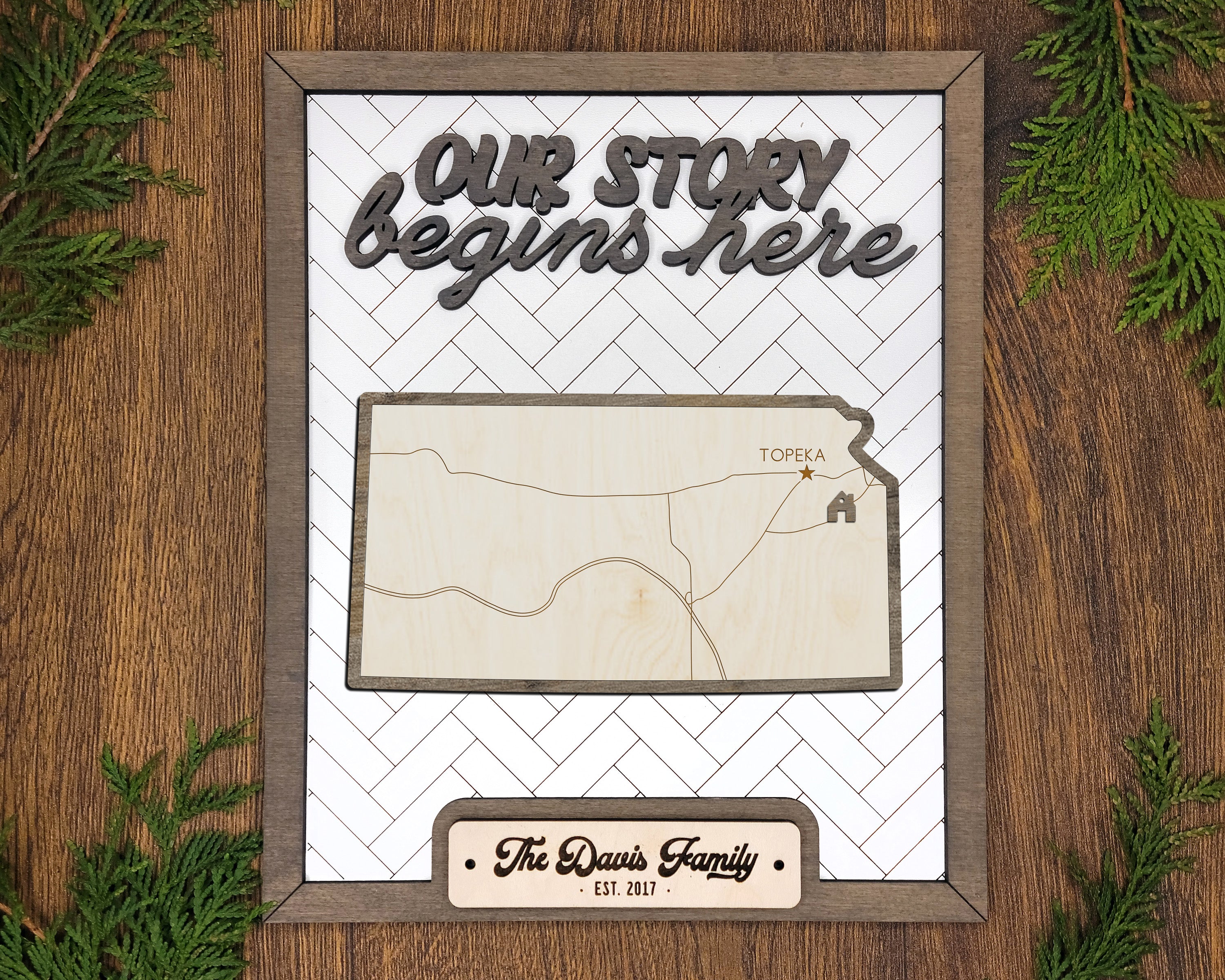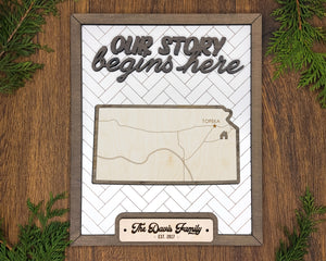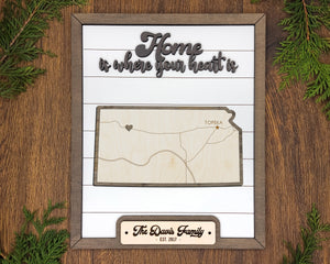 Personalized Kansas States Wood Frame, 50 States 2 Layers Wood Plaque, Gift For Nature Lovers