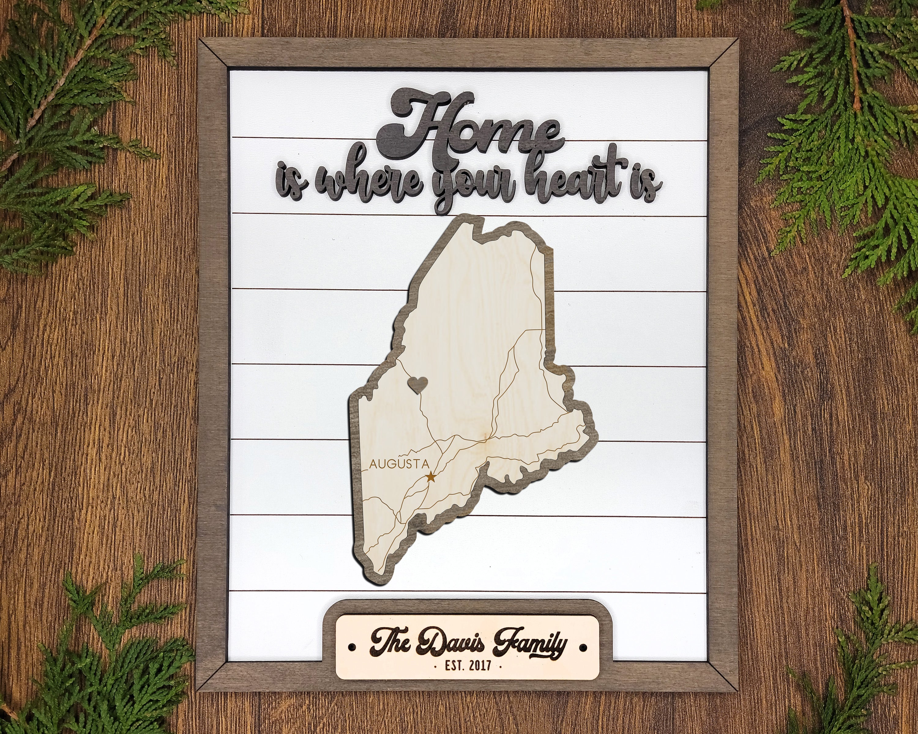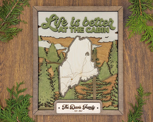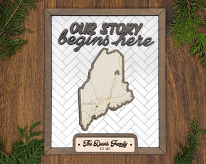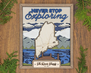 Personalized Maine States Wood Frame, 50 States 2 Layers Wood Plaque, Gift For Nature Lovers