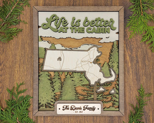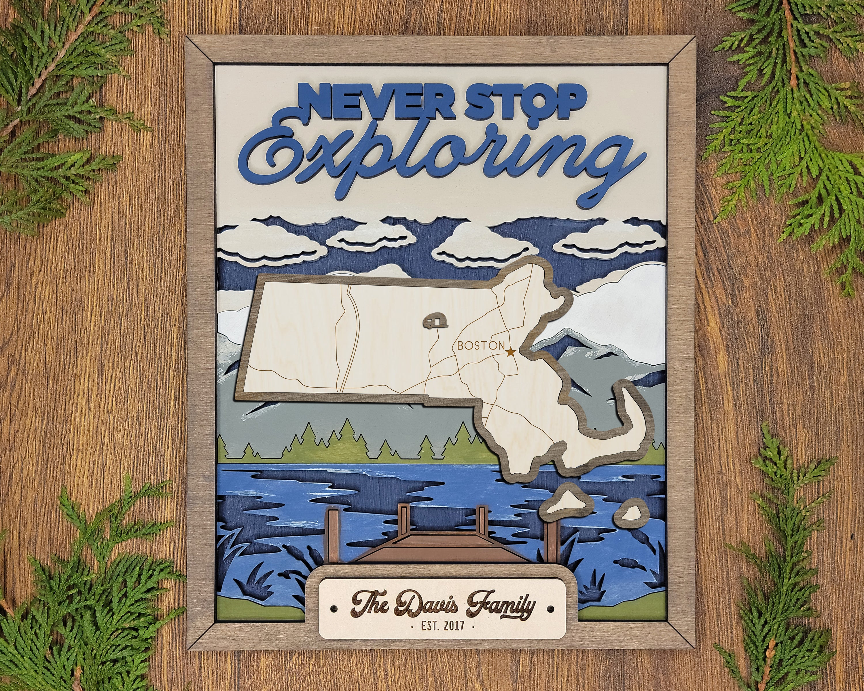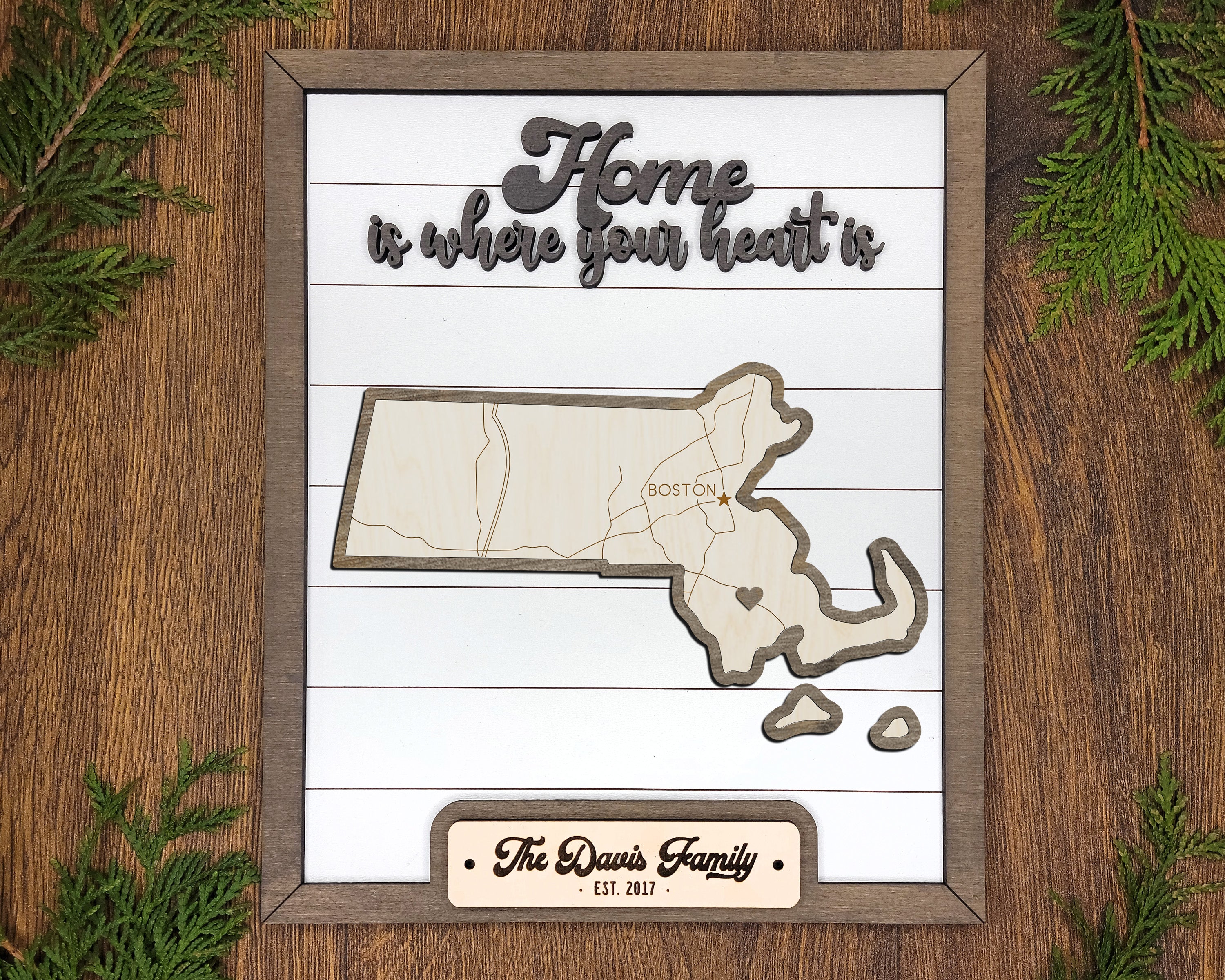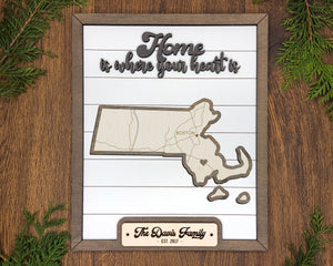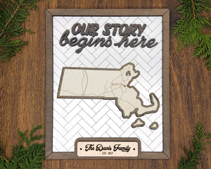 Personalized Massachusetts States Wood Frame, 50 States 2 Layers Wood Plaque, Gift For Nature Lovers