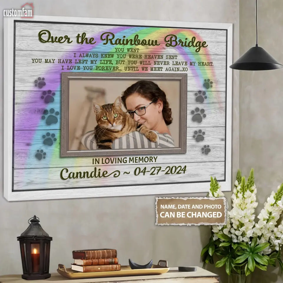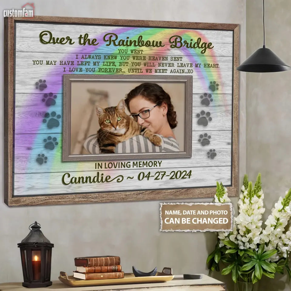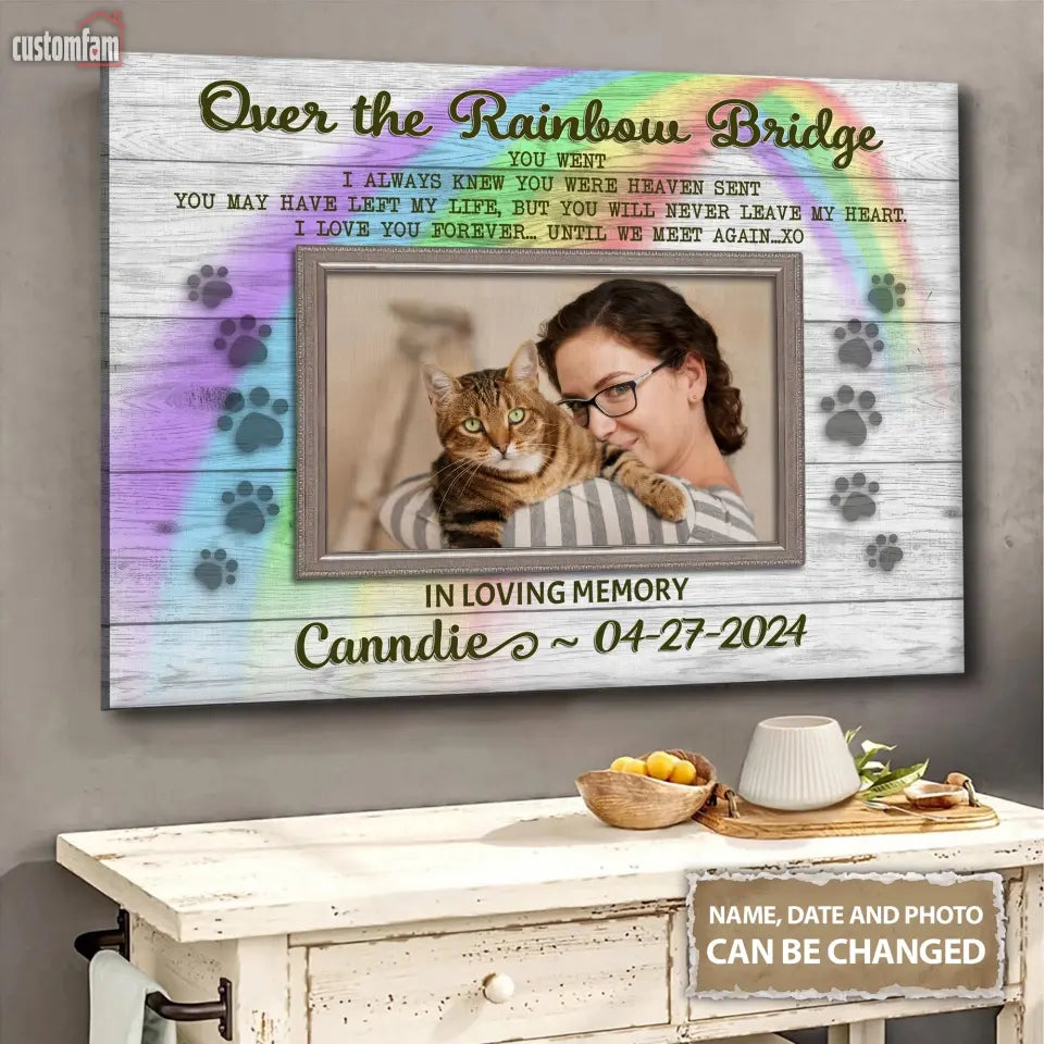 Personalized Memorial Canvas Prints Gift, Gift For Someone Who Lost A Pet Over The Rainbow Bridge, Canvas Wall Art Decor