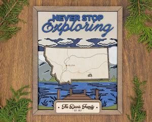 Personalized Montana States Wood Frame, 50 States 2 Layers Wood Plaque, Gift For Nature Lovers