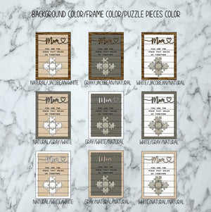 Our Mom You Are the Piece that Holds Us Together Puzzle Sign makes the perfect anniversary, birthday, Mother's Day, Father's Day, or any day gift!