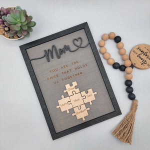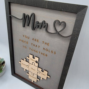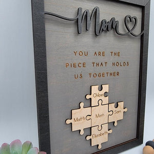 You Are the Piece that Holds Us Together Puzzle Pieces Personalized Mom Sign, Name Sign Mother Day Gift, Mom Puzzle Sign, Mother's Day Gift