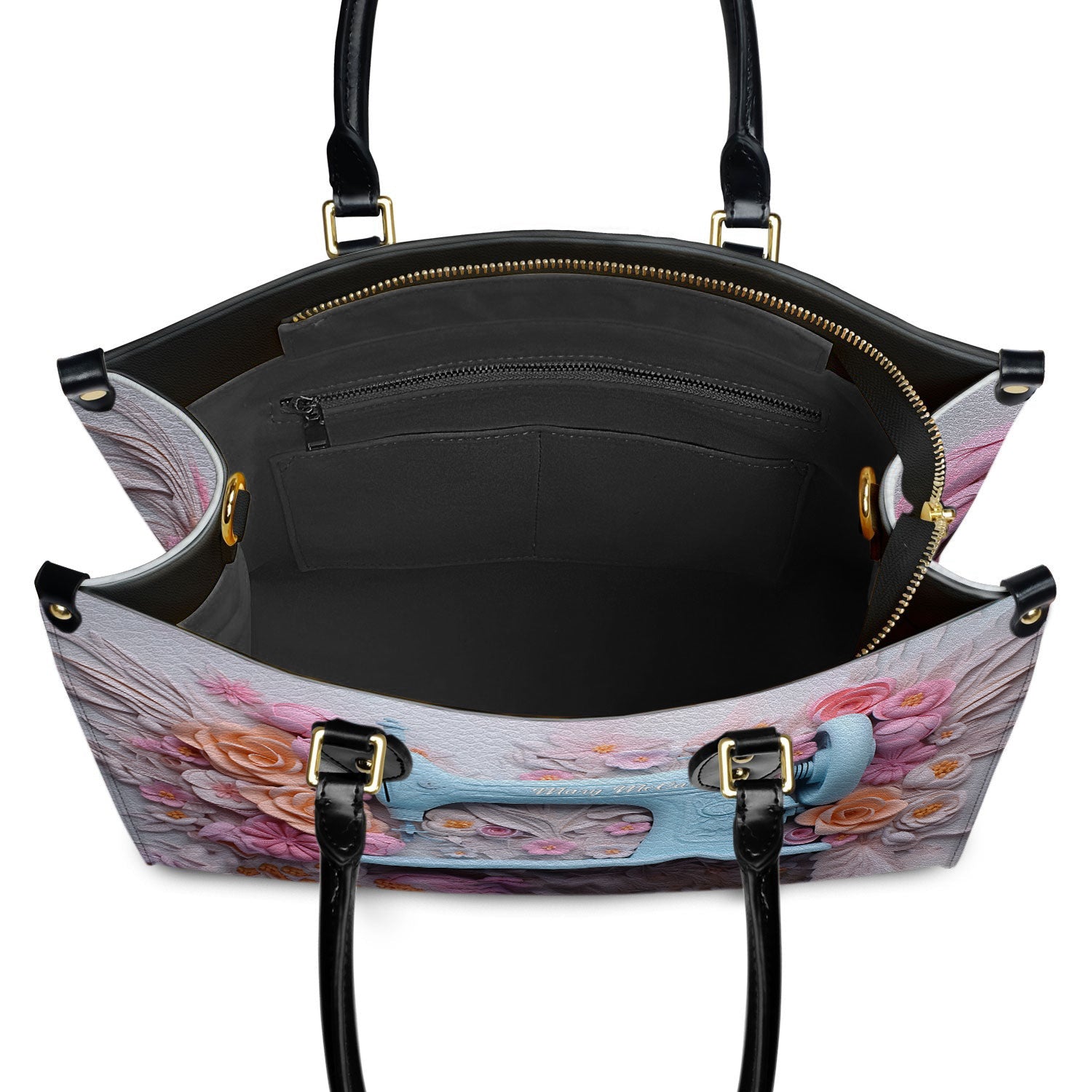 Experience the luxurious touch of premium flocked fabric lining the inside of your bag.