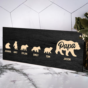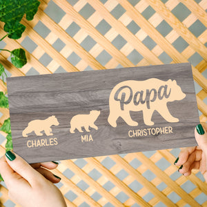 PERFECT GIFT FOR DAD: Our personalized Papa Bear Sign is a sentimental gift for dads, symbolizing the endless love and strength of a father for his children. It portrays them as a bear family, led by a papa bear. The plaque can be personalized with the names of a dad and his children.