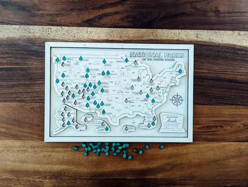 Perfect for nature lovers and explorers, it's an artistic way to display the national parks your family has visited.