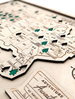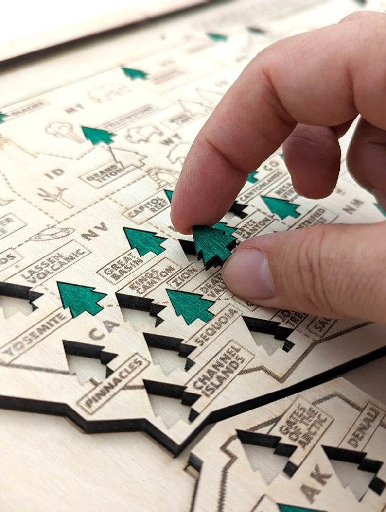 With our custom engraved badge, your wood map becomes a one-of-a-kind storyteller - marking your family name and the beginning of countless outdoor journeys through America's most beautiful parks.
