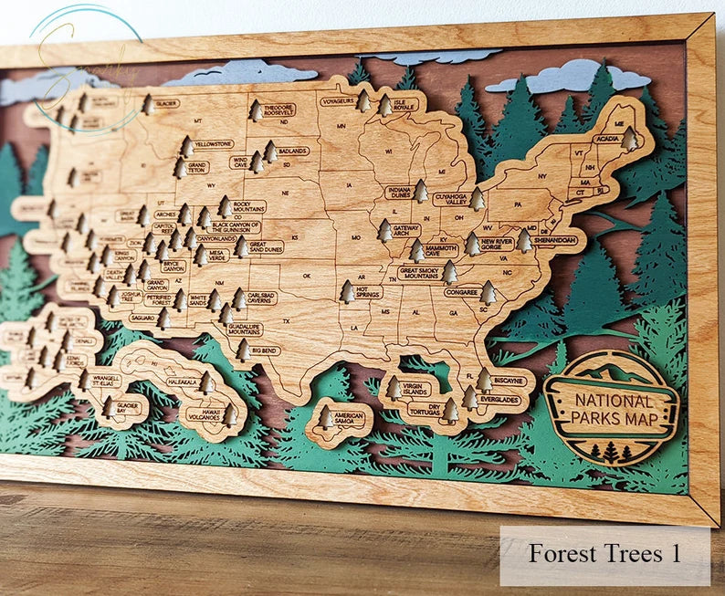 With our custom engraved badge, your wood map becomes a one-of-a-kind storyteller - marking your family name and the beginning of countless outdoor journeys through America's most beautiful parks.
