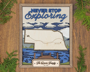 Personalized Nebraska States Wood Frame, 50 States 2 Layers Wood Plaque, Gift For Nature Lovers