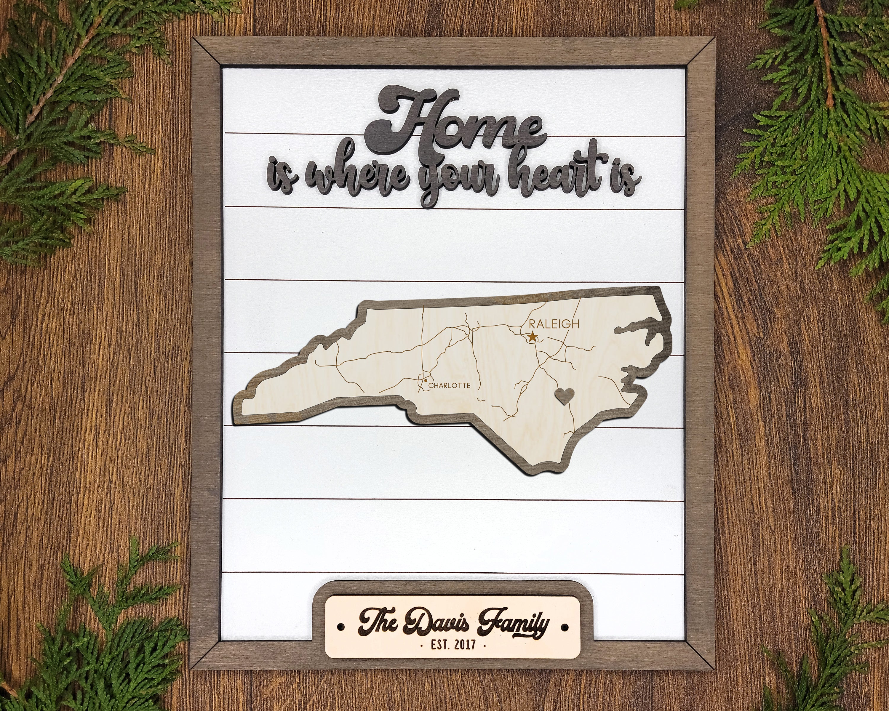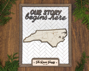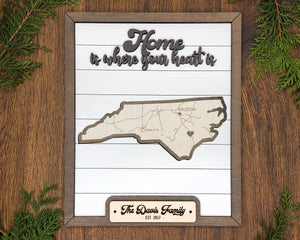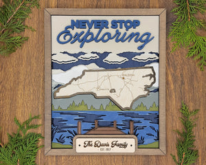 Personalized North Carolina States Wood Frame, 50 States 2 Layers Wood Plaque, Gift For Nature Lovers