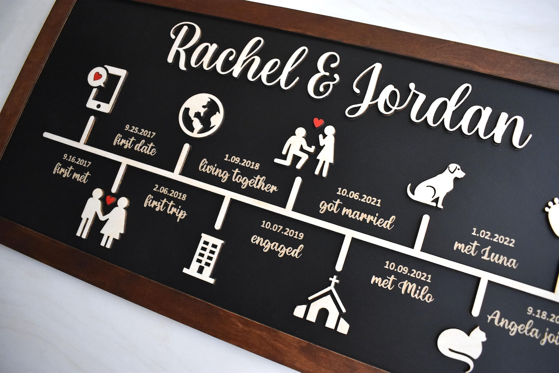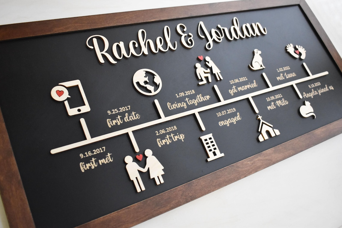 Custom Love Story, Love Story Timeline 2 Layered Frame Wood Sign, Custom Anniversary Gifts, Valentine Couple Gifts