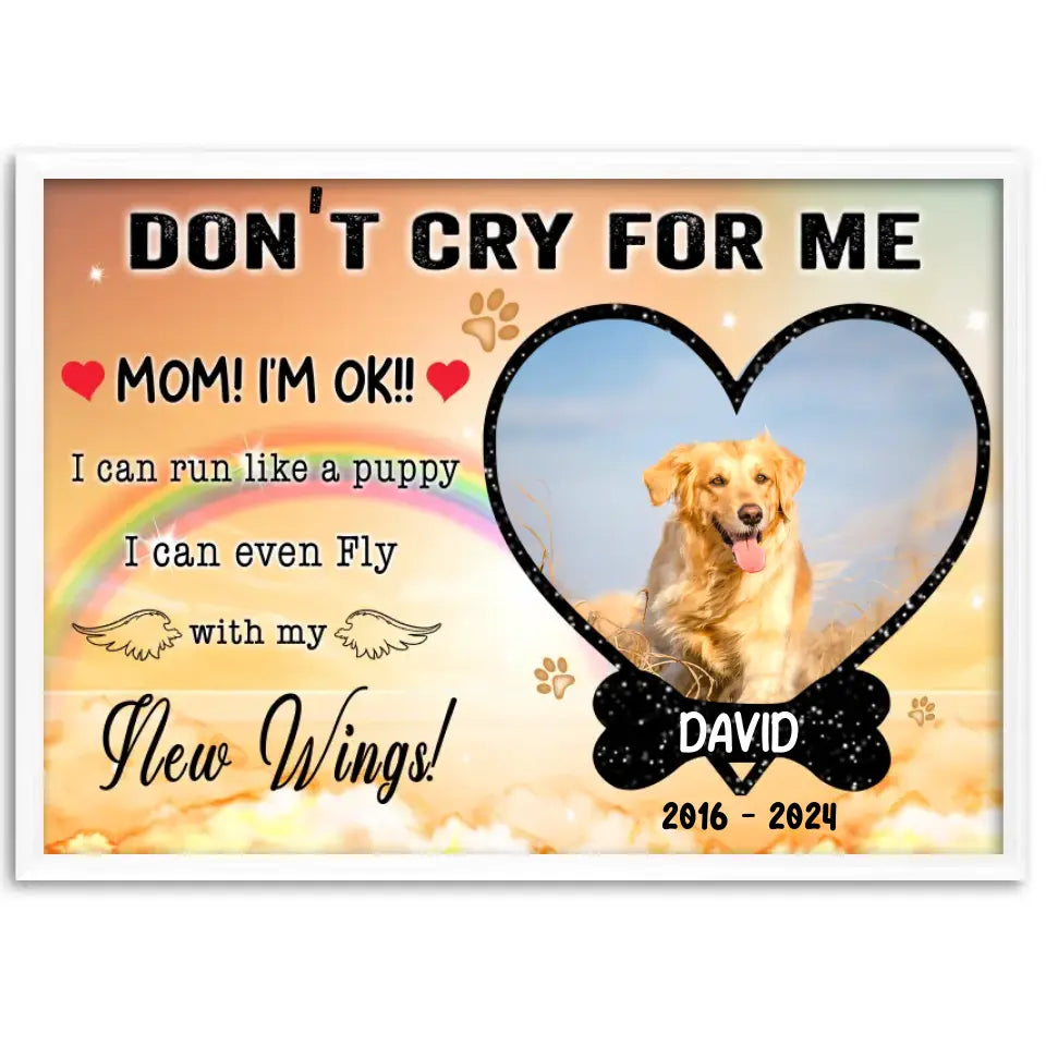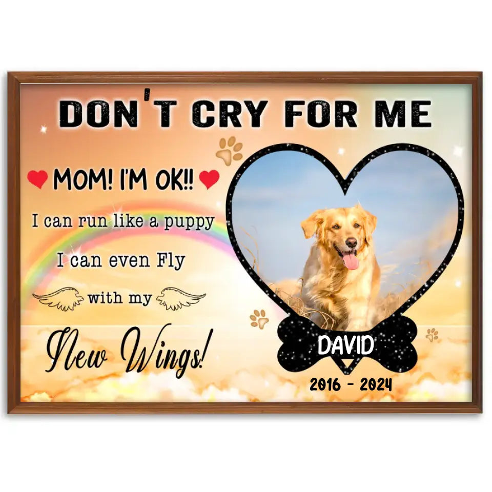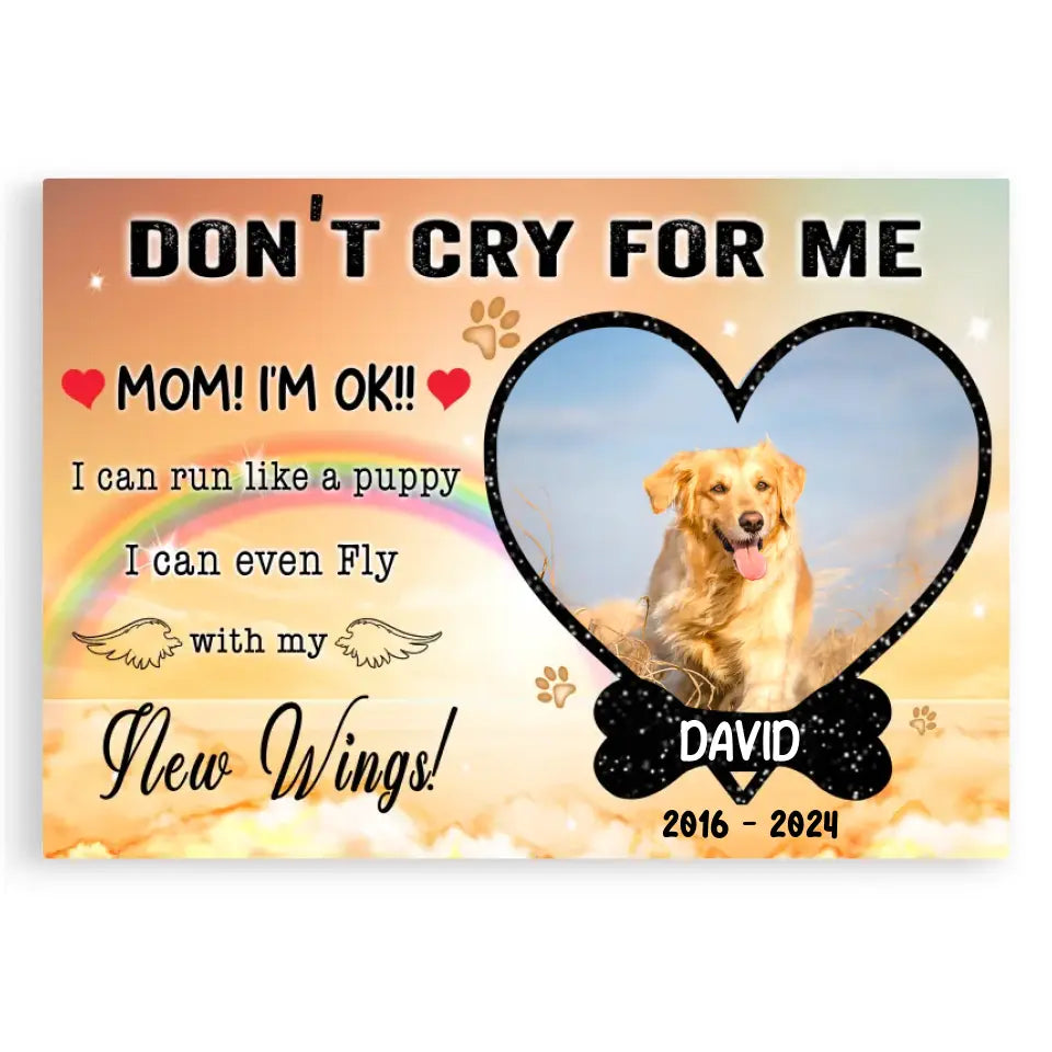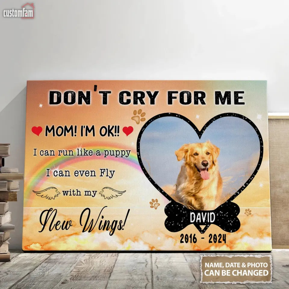 Personalized Photo Canvas, Don't Cry For Me Memorial Framed Canvas, Dog Loss Gifts, Dog Lover Gift