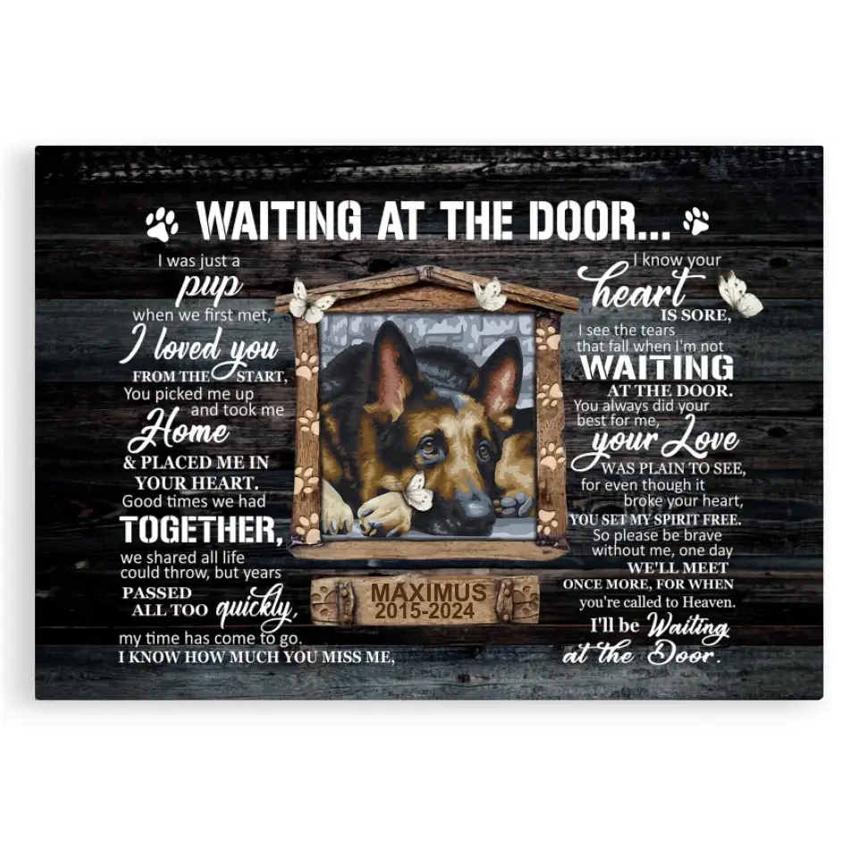 Personalized Photo Canvas Wall Art, Memorial Gifts For Dog Lovers, Dog Loss Gift, Waiting At The Door Pup Canvas