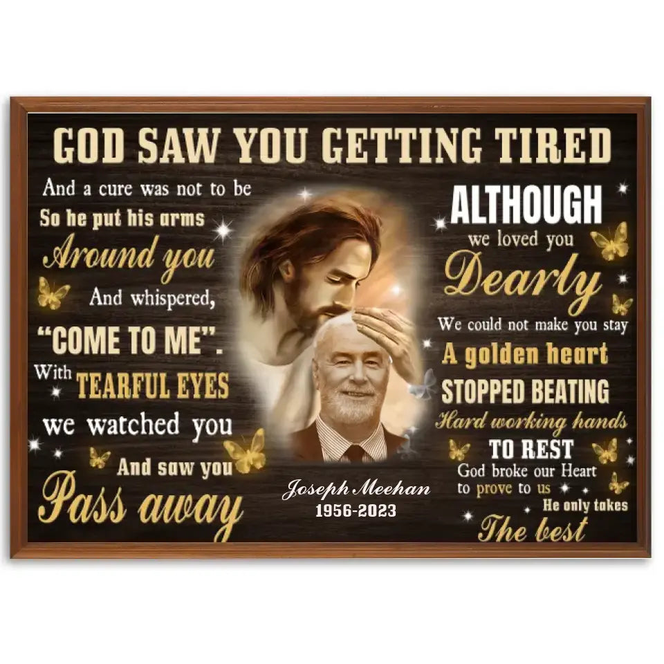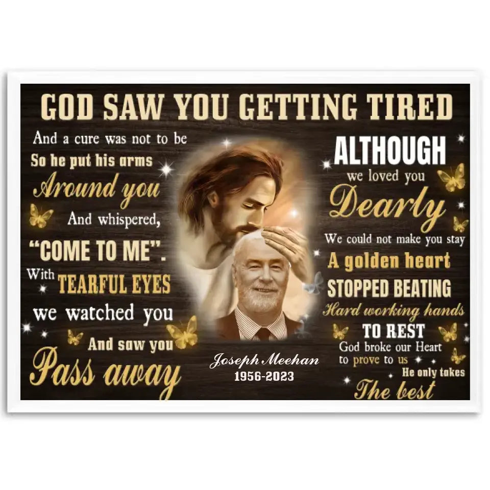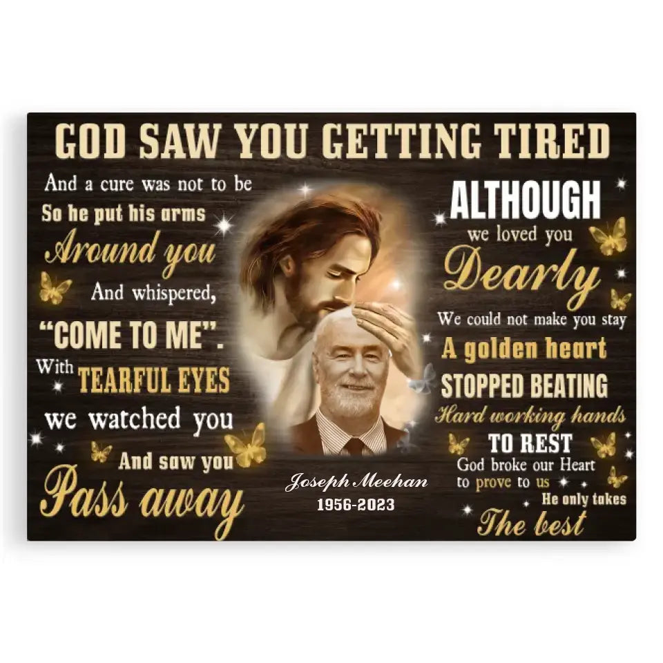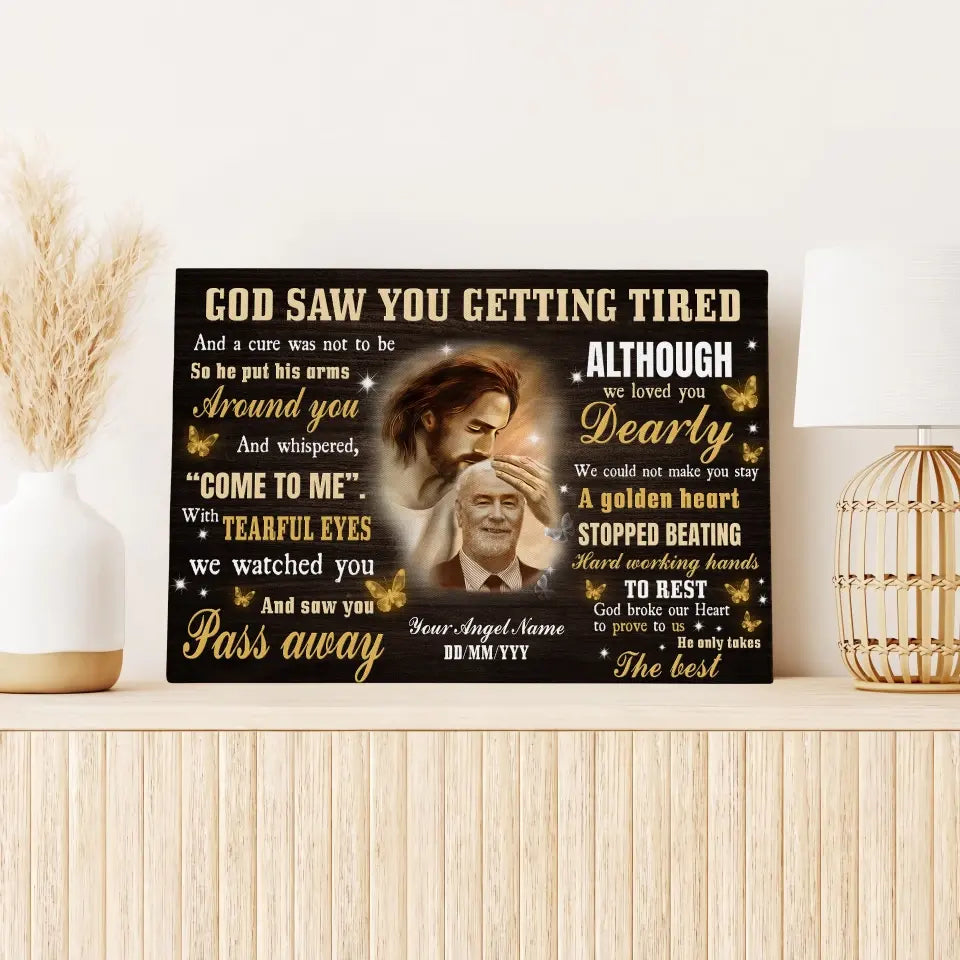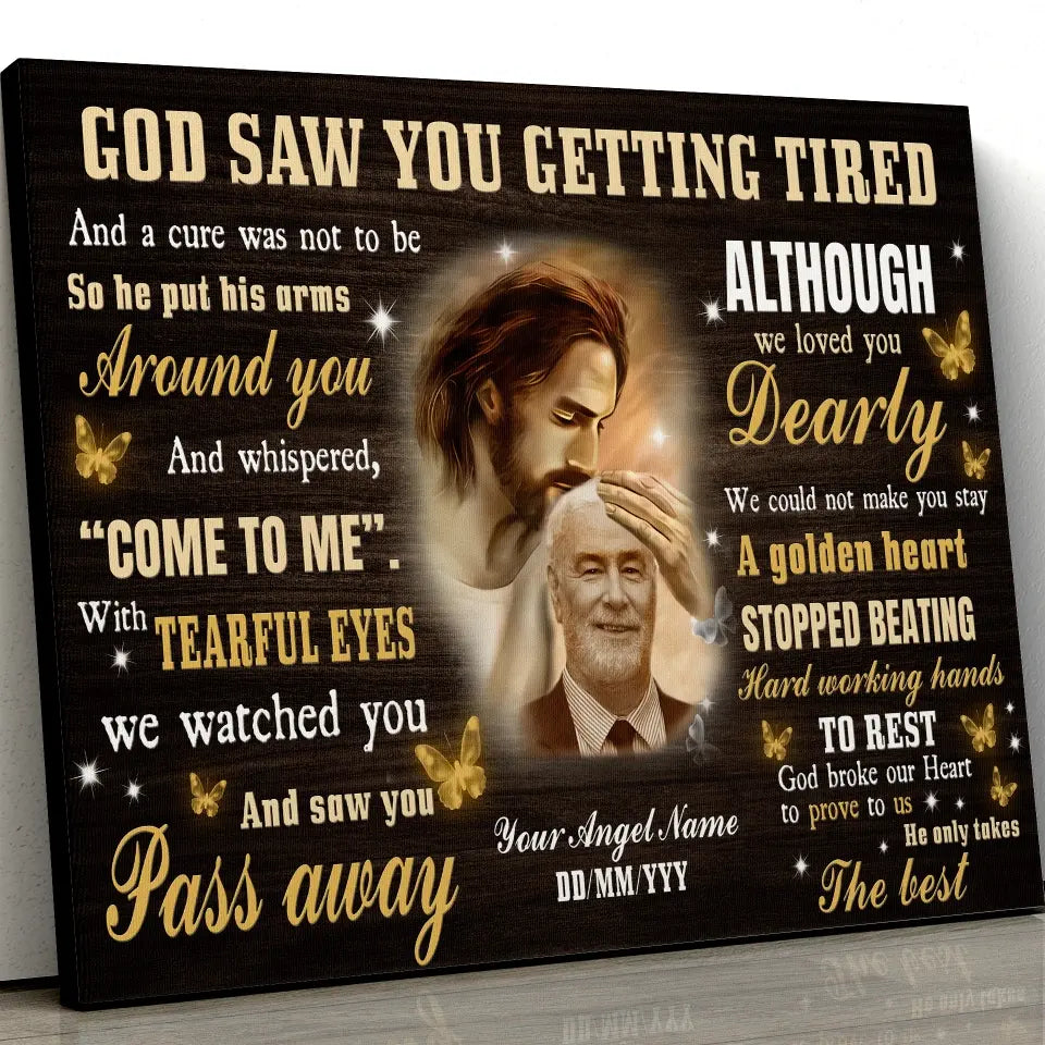 God Saw You Getting Tired Canvas Prints, Custom Name Date Canvas For Lovers, Sympathy Gifts, Loss Dad Memorial, Remembrance Gifts
