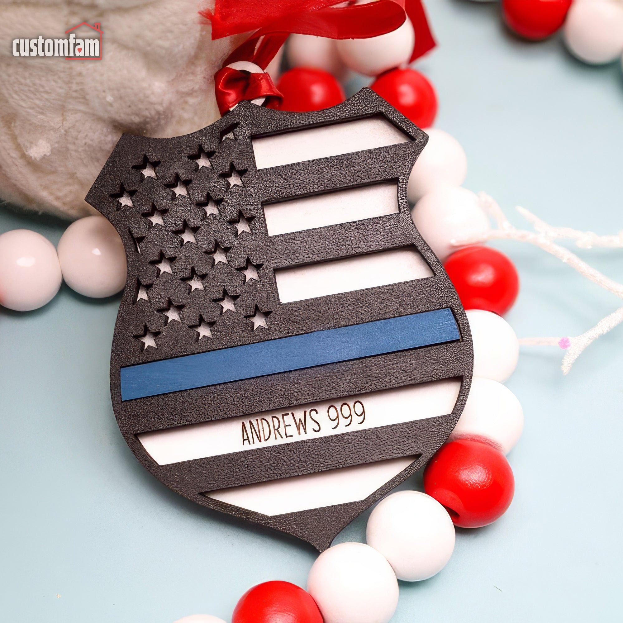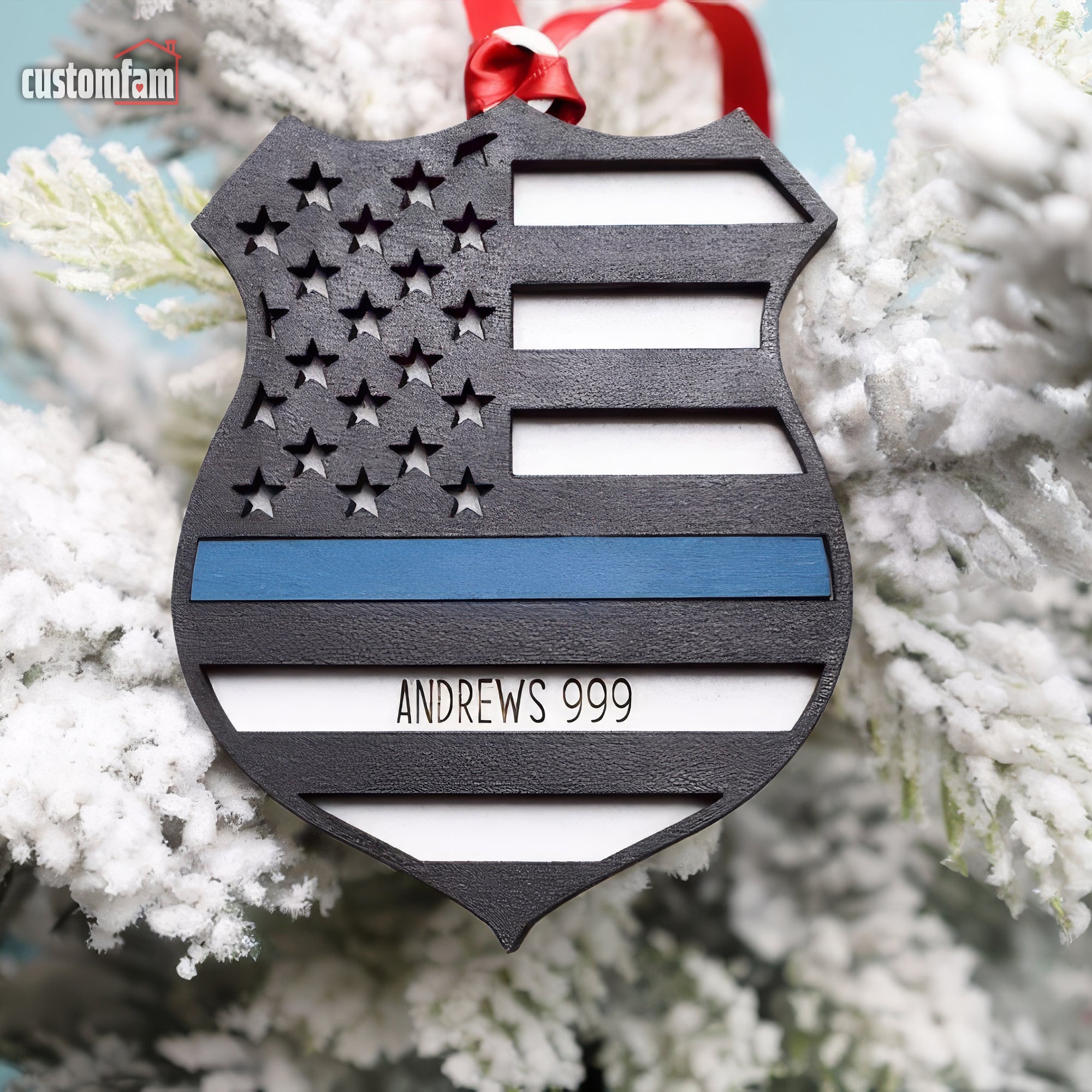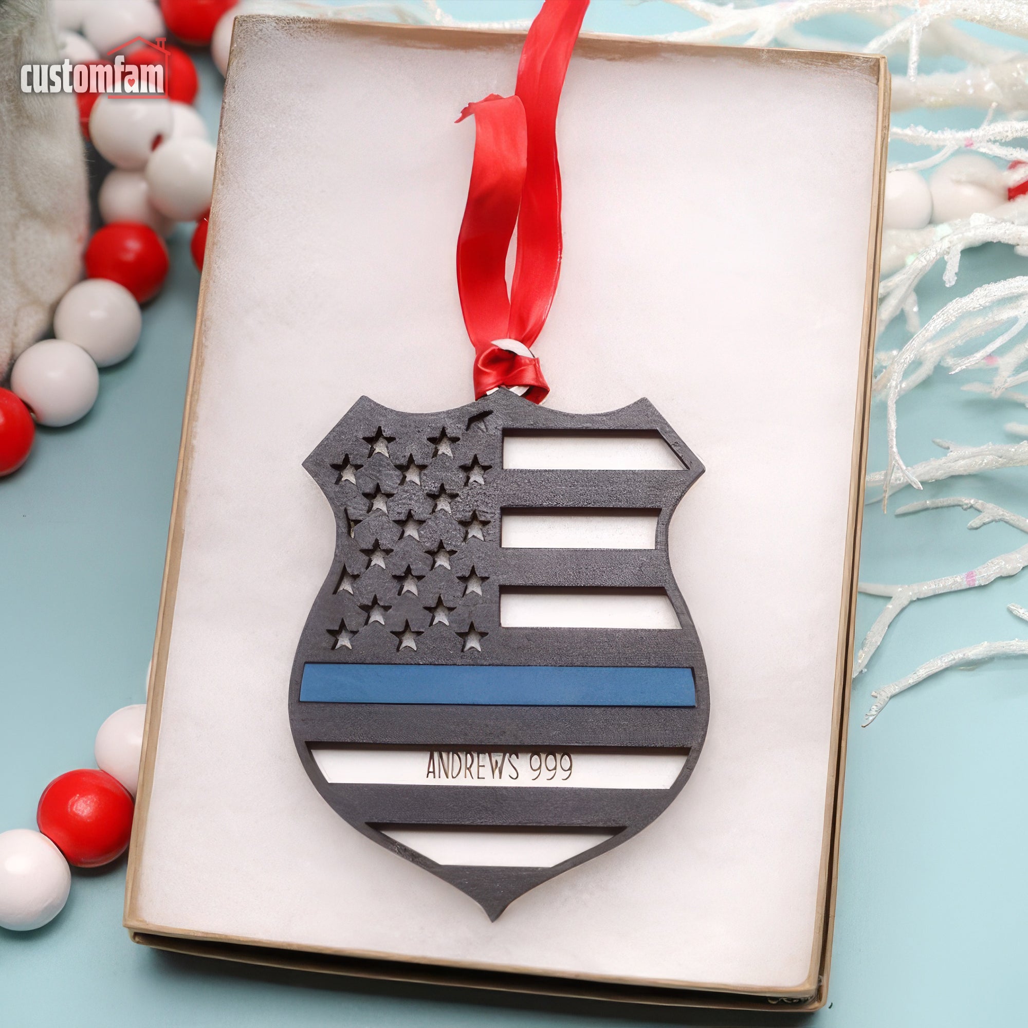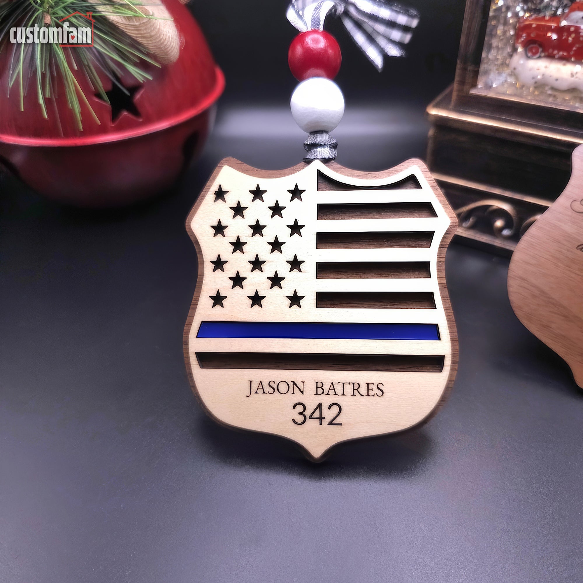 Personalized Police Ornament, Wooden Christmas Ornament, Gift for Cop