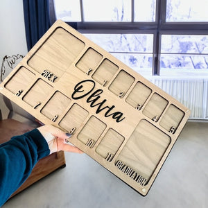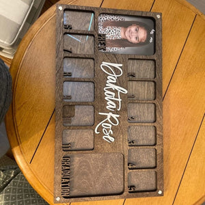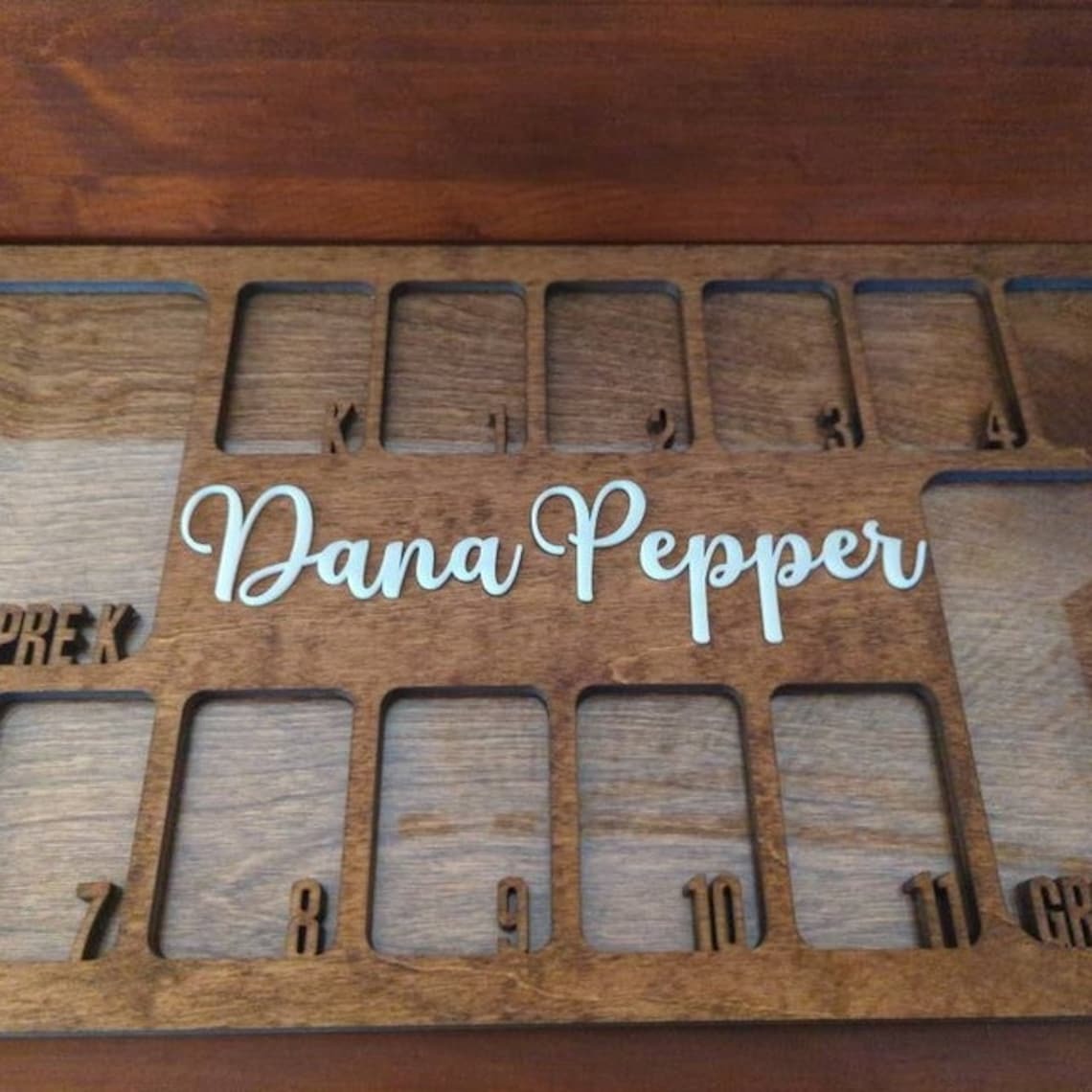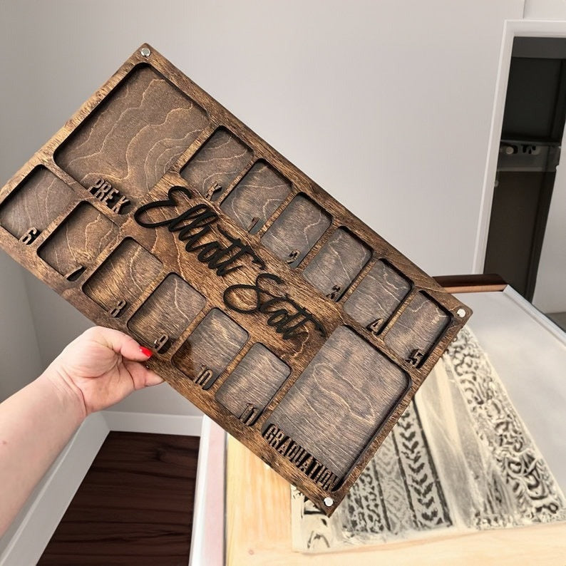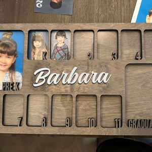 This photo frame is a beautiful way to display your child's school pictures from pre k to graduation in one place!