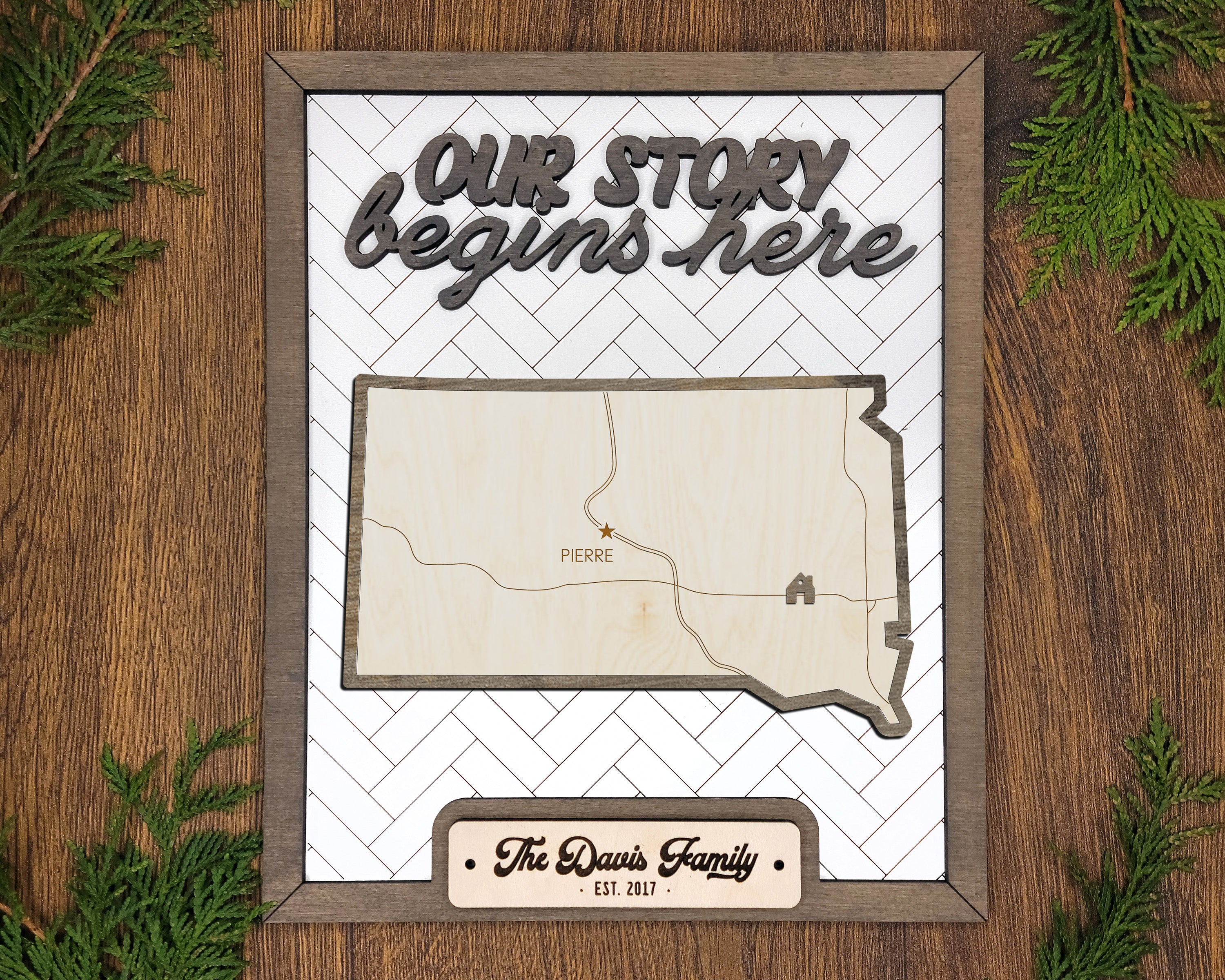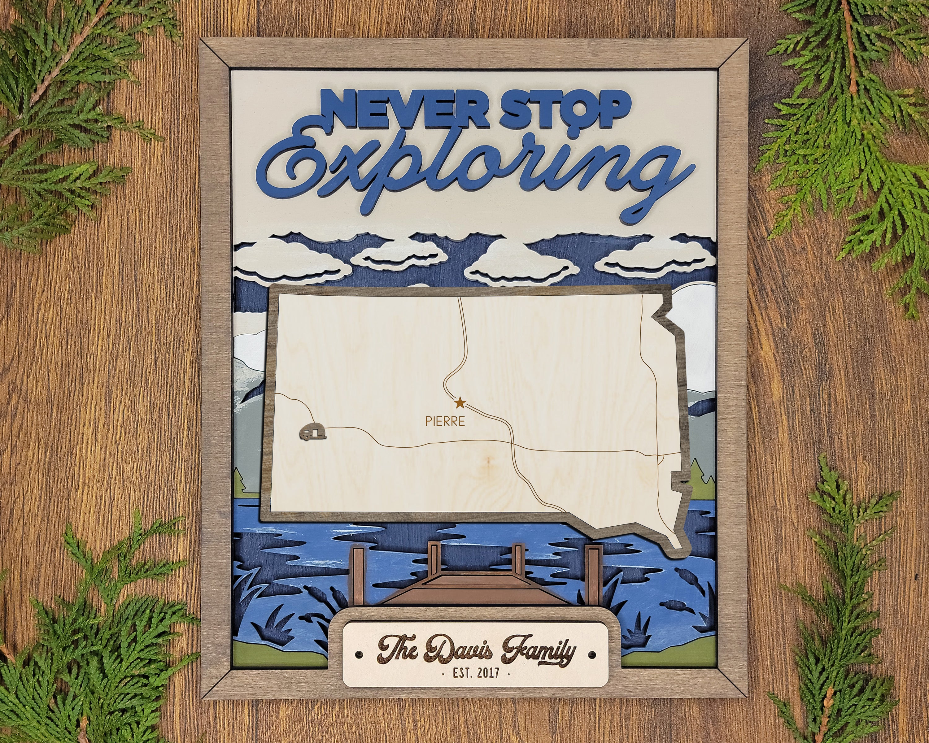 Personalized South Dakota States Wood Frame, 50 States 2 Layers Wood Plaque, Gift For Nature Lovers