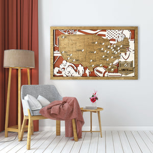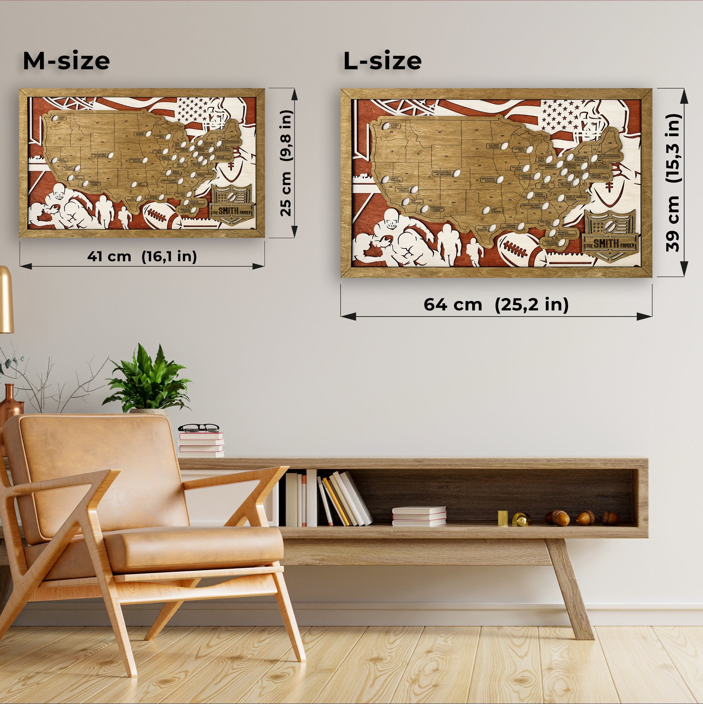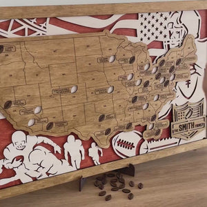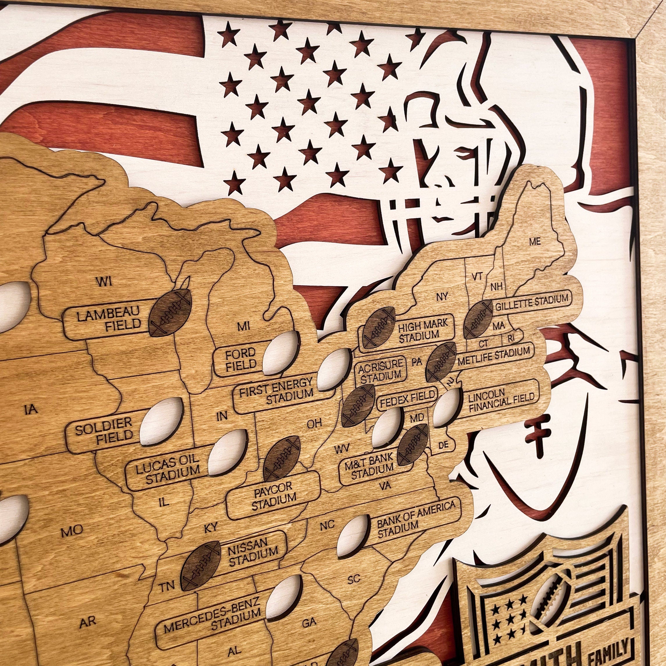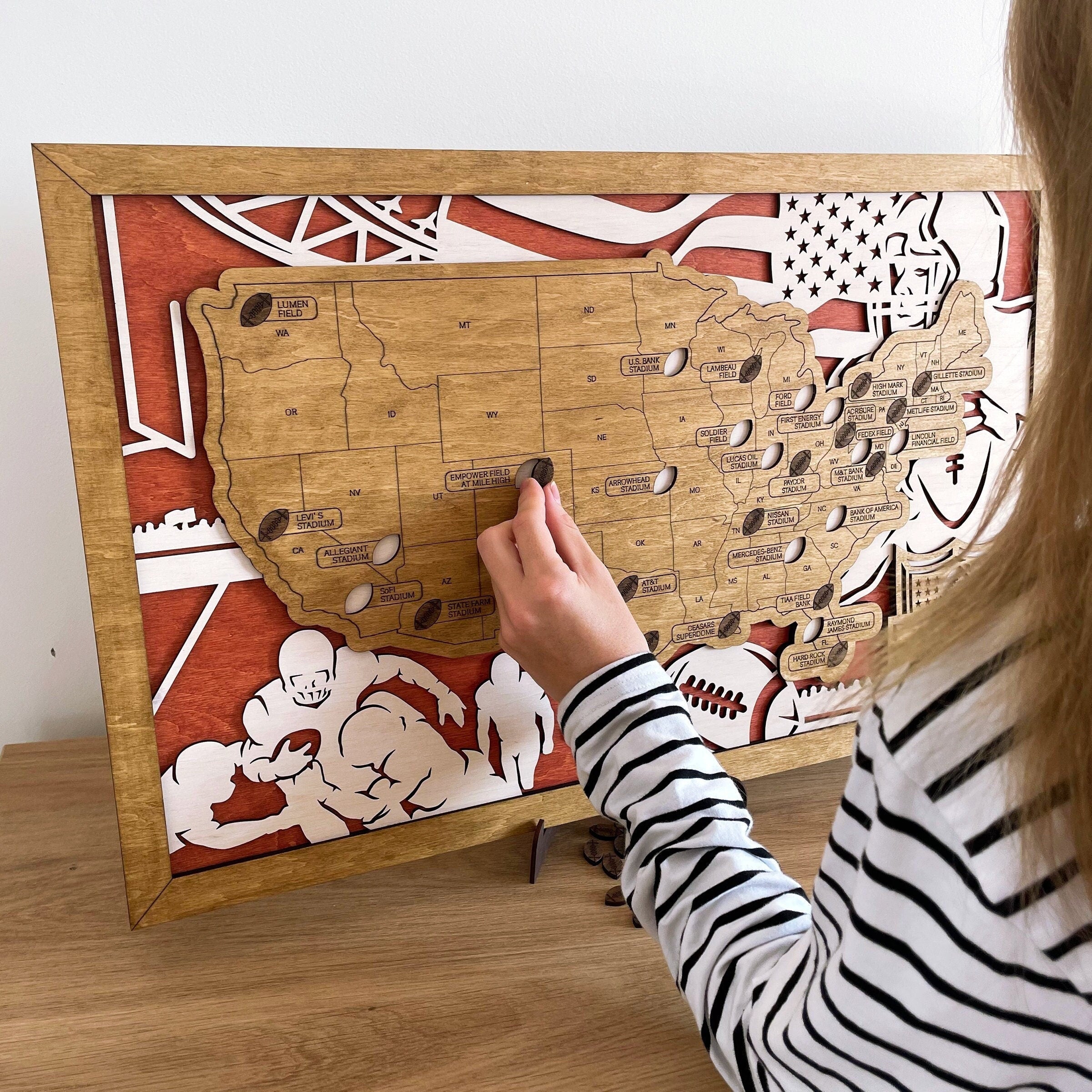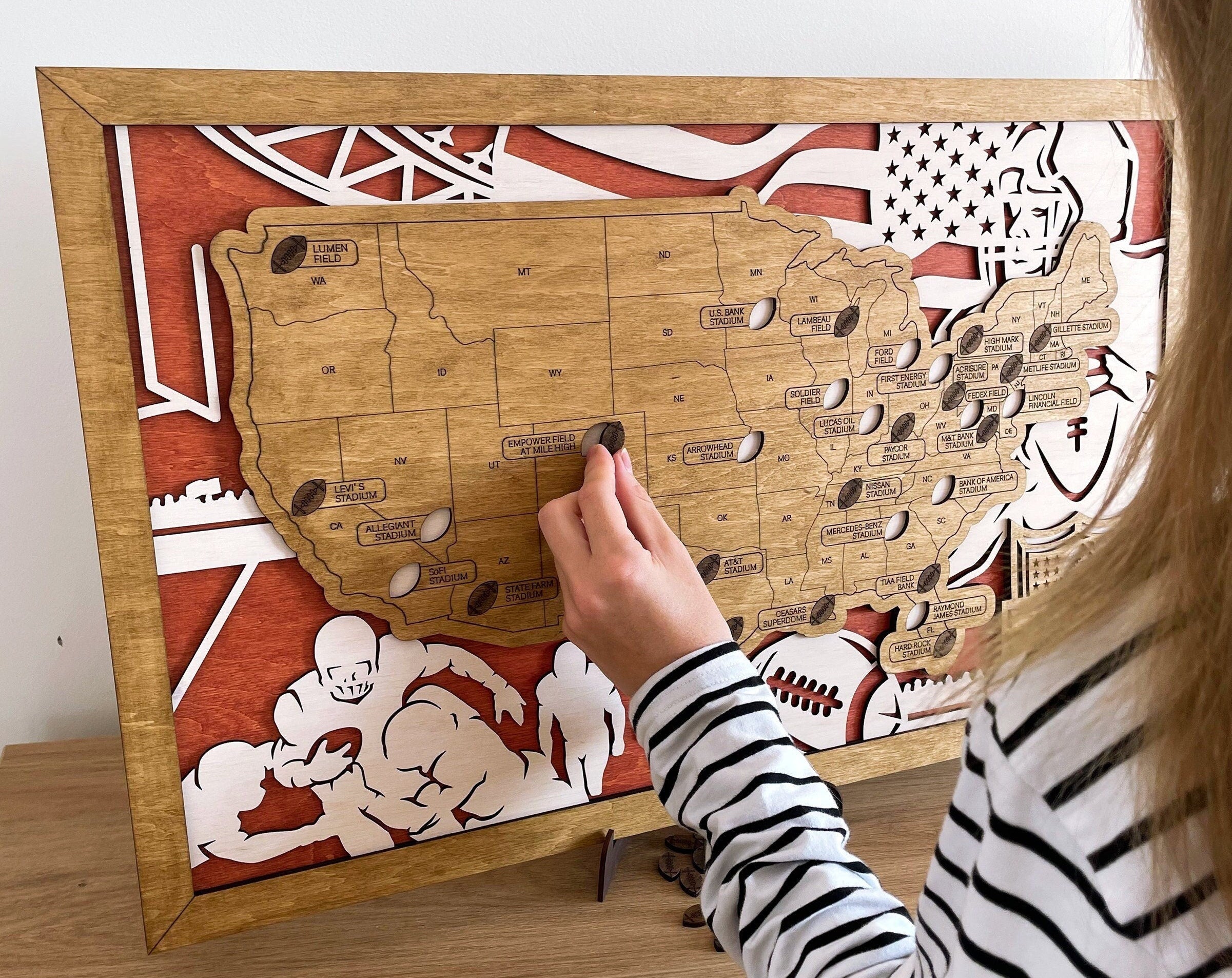 Custom Football League Stadium Map With Pins, National Football Stadium US Wooden Map Tracker