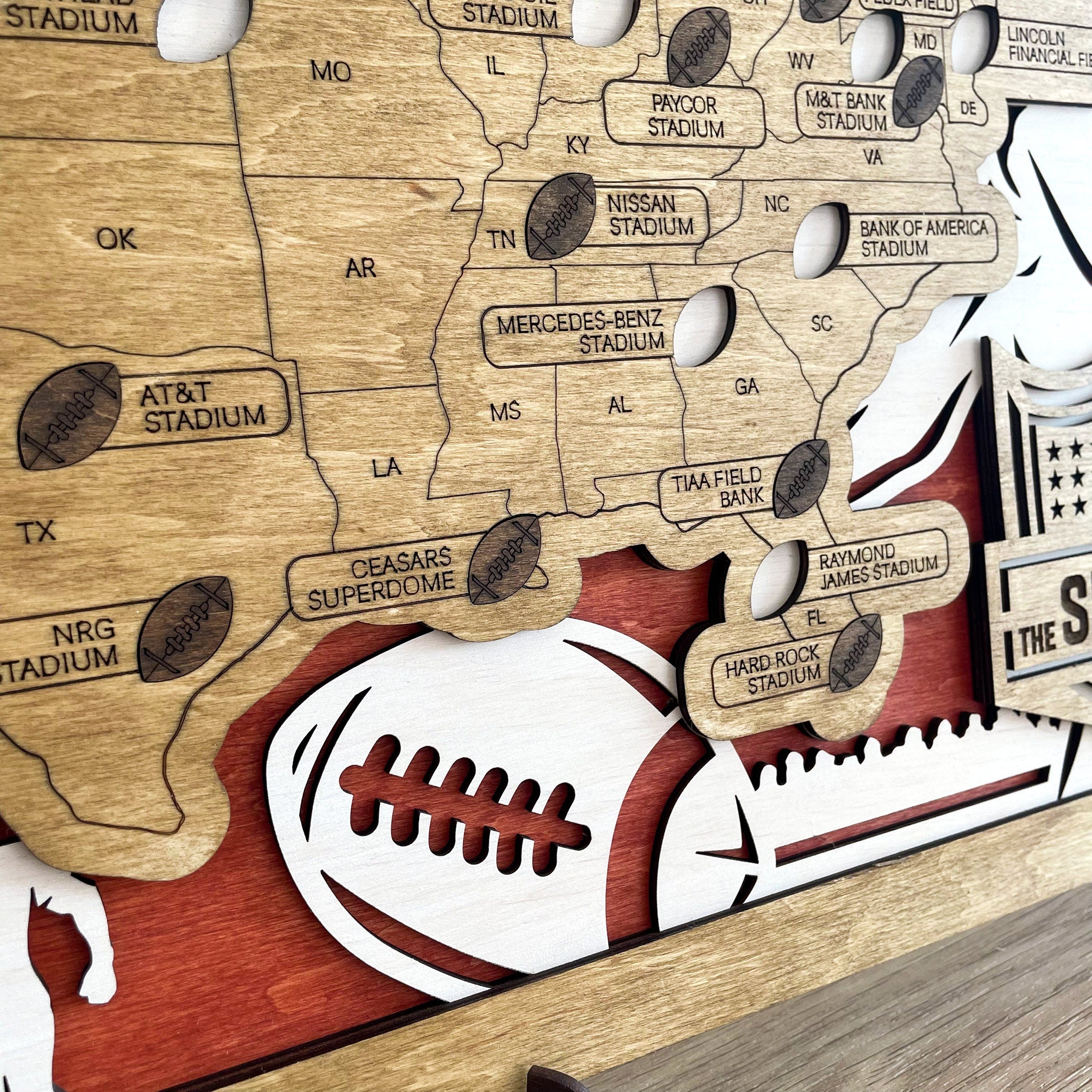Personalized Stadium Map Football Stadium Map, Wooden Pro Football Stadium Tracker Gift