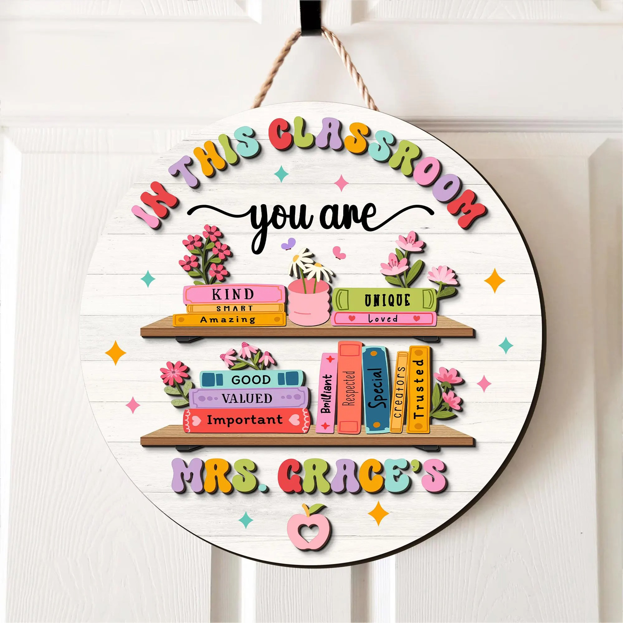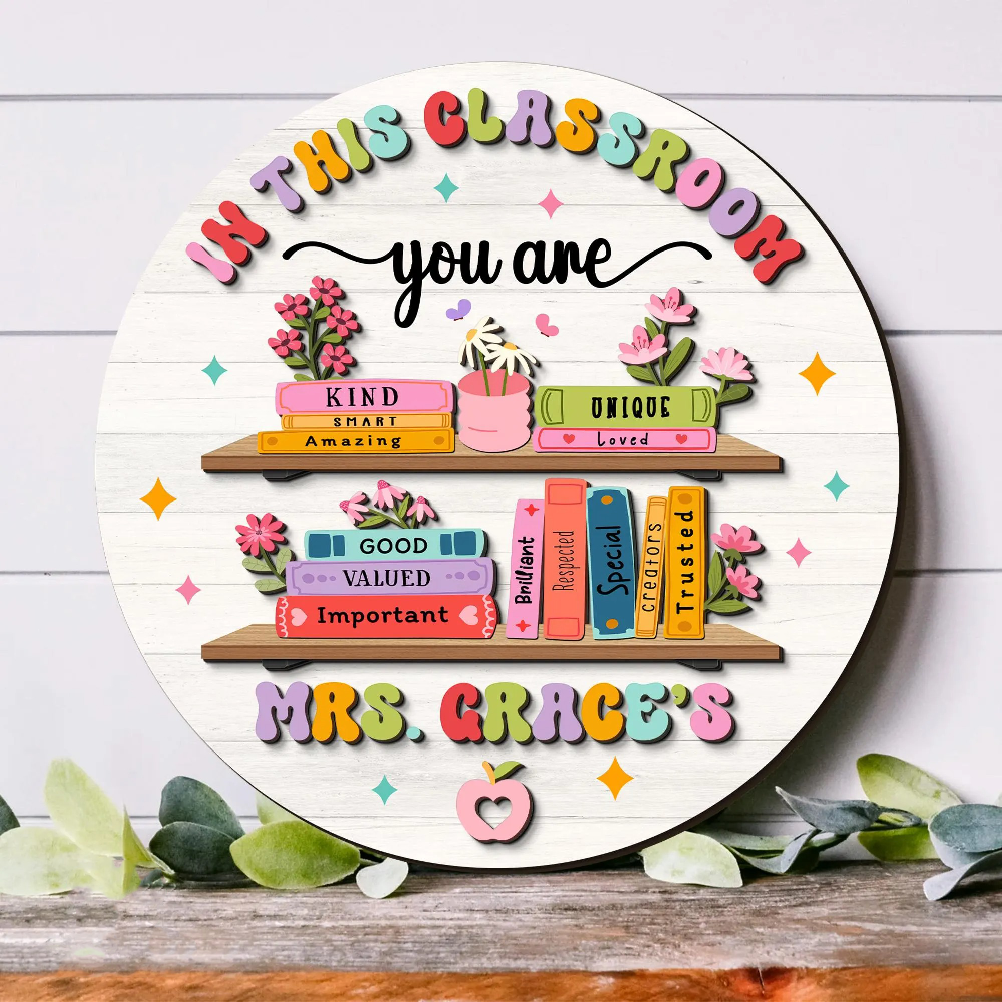 Personalized for teachers: Add your teacher's name for a unique and memorable classroom feature